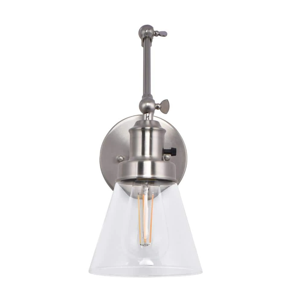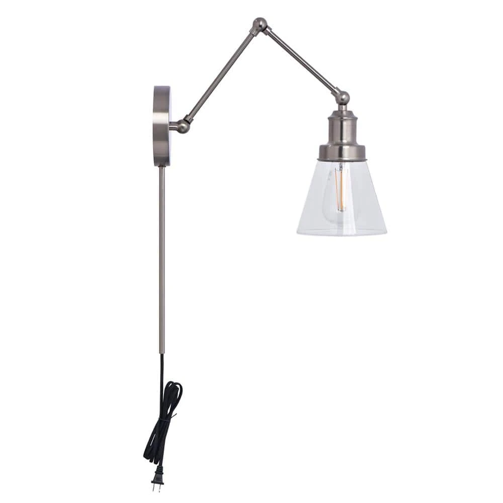 Fashioned after vintage inspired lighting the Hampton Bay 1-Light Plug-In or hardwired Industrial Wall Light adds a rustic industrial feel to any room. Leave it as a plug-in to move it easily and create different looks in different rooms or hardwire it to your wall for a long-lasting look. Various assortments of vintage inspired designer bulbs provide for a look that is truly your own. Ideal for use in kitchens, restaurants, bars, bathrooms, bedrooms and dining rooms. Includes all mounting hardware for quick and easy installation and requires one 60-Watt MAX E26 based (medium base) light bulb (sold separately).