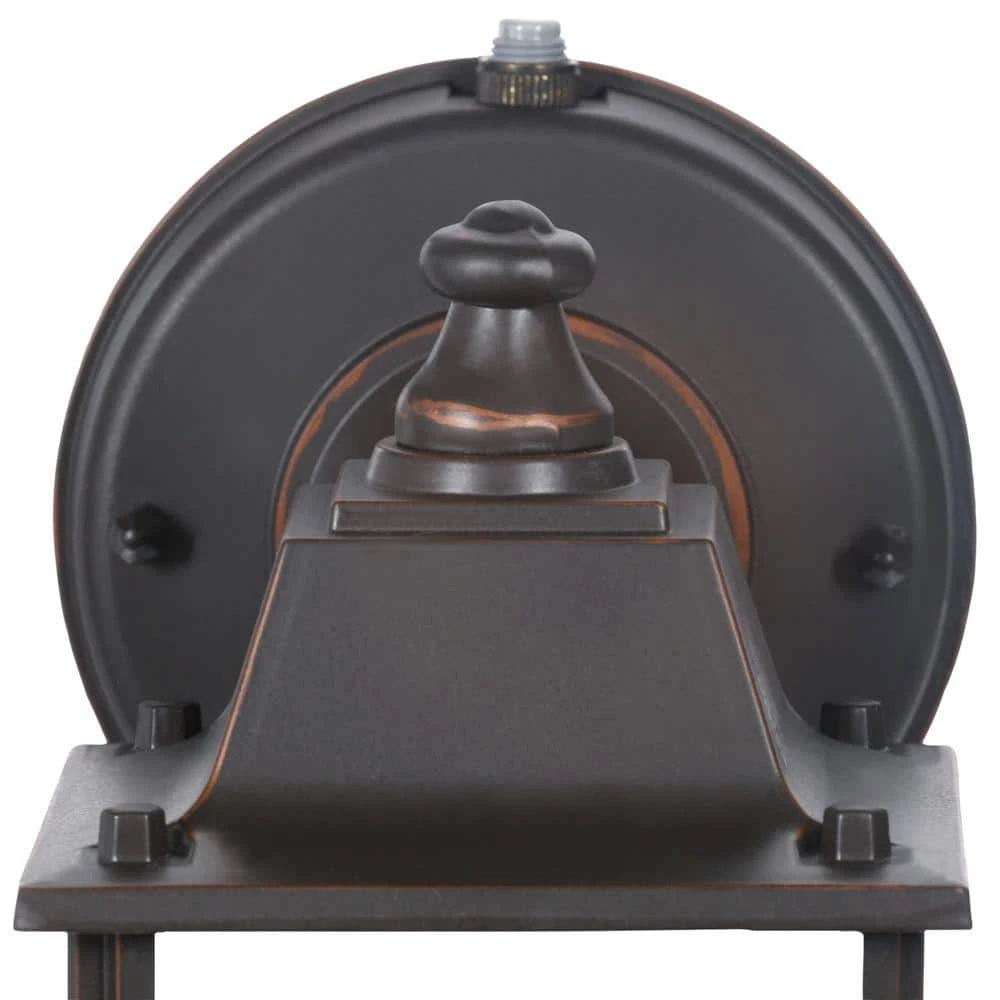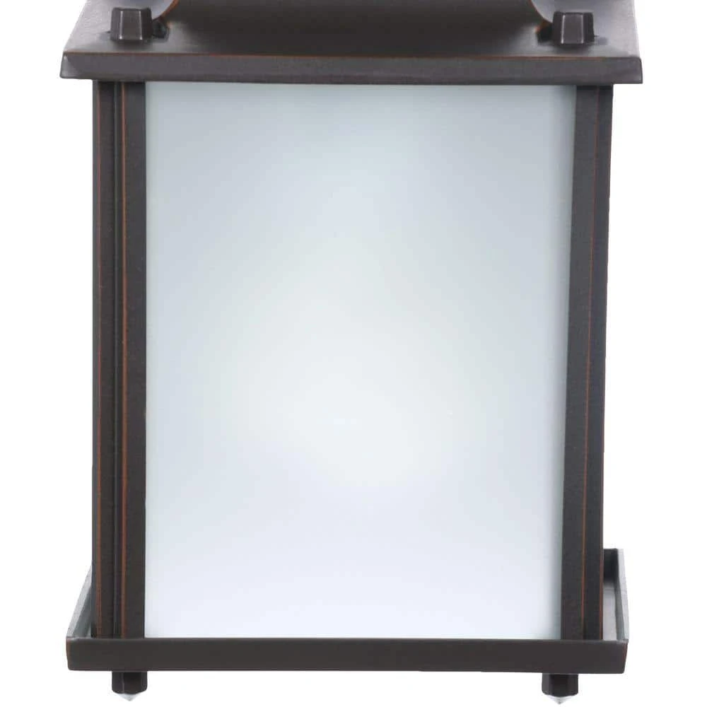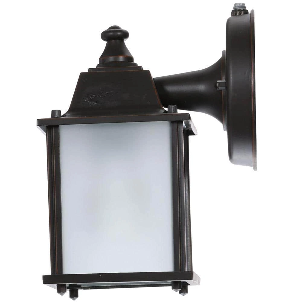 Use the Hampton Bay Wall-Mount 1-Light Oil Rubbed Bronze Dusk-to-Dawn Lantern to add timeless style to your exterior living space. This energy-efficient wall lantern features a beautiful, oil-rubbed bronze finish and a frosted white glass shade. Uses 1-13-Watt CFL GU24-light bulb (included).