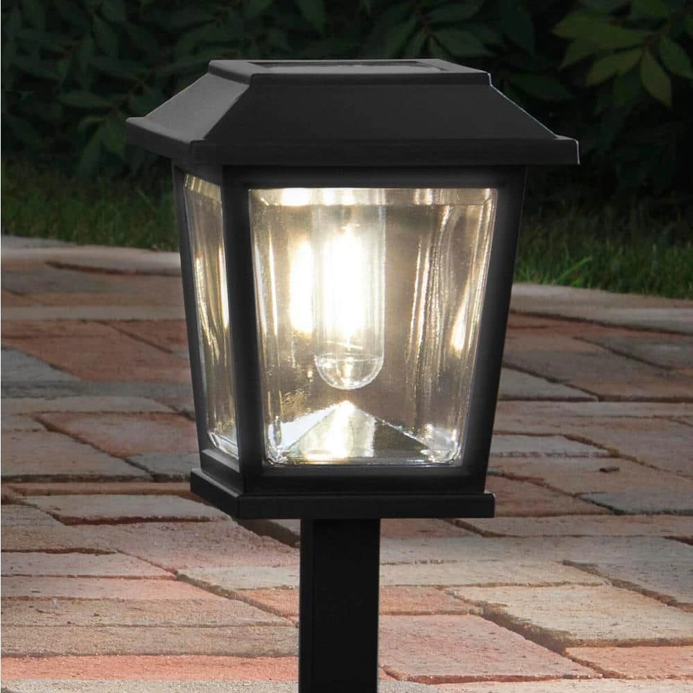 The 4-pack Hampton Bay Solar LED Pathway lights creates bright 2500K warm white lighting that is perfect for illuminating your driveway, walkway, patio or garden. At 10 Lumens, you’ll enjoy 8-hours of uninterrupted illumination. The black finish is applied to applied to weather resistant polymeric materials for years of maintenance-free operation (no bulbs to replace). Included with your LED pathway light are all necessary hardware and battery(s).