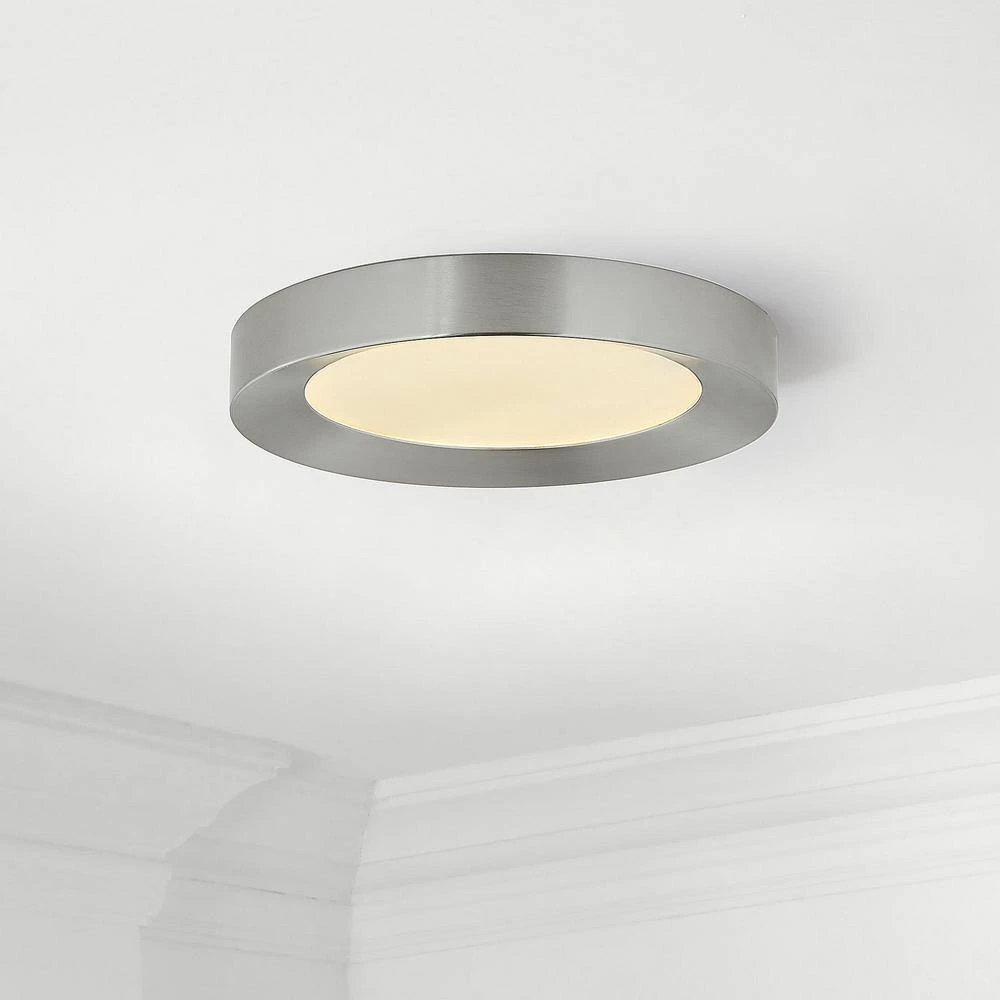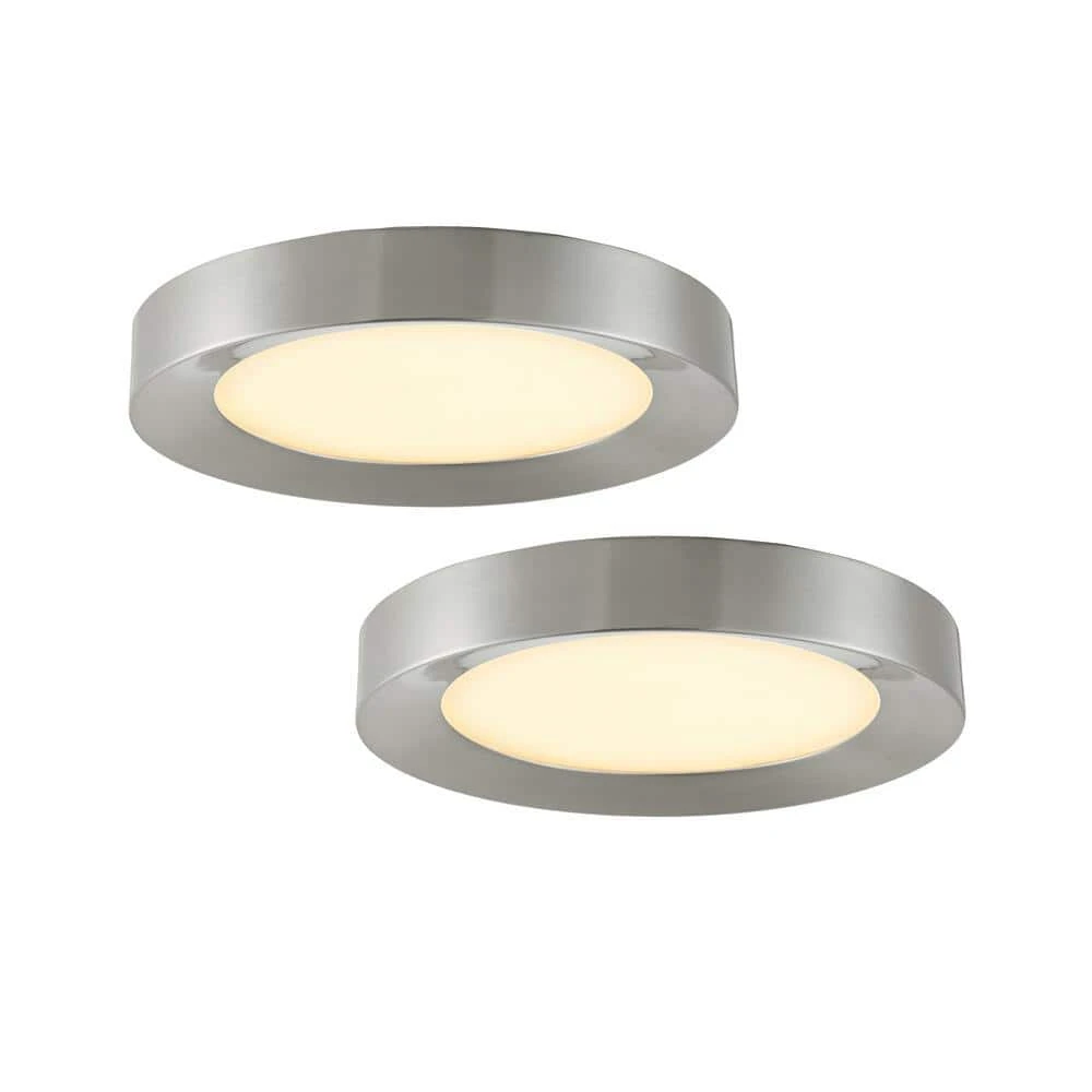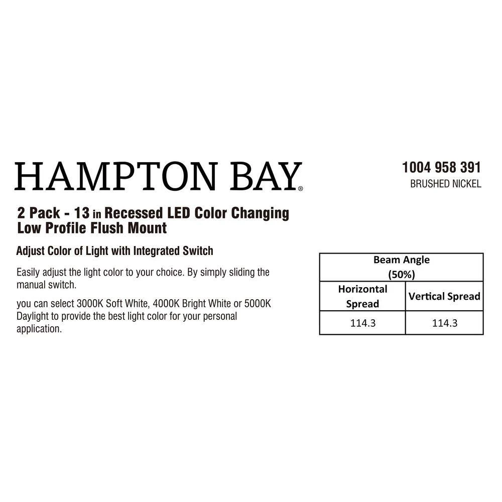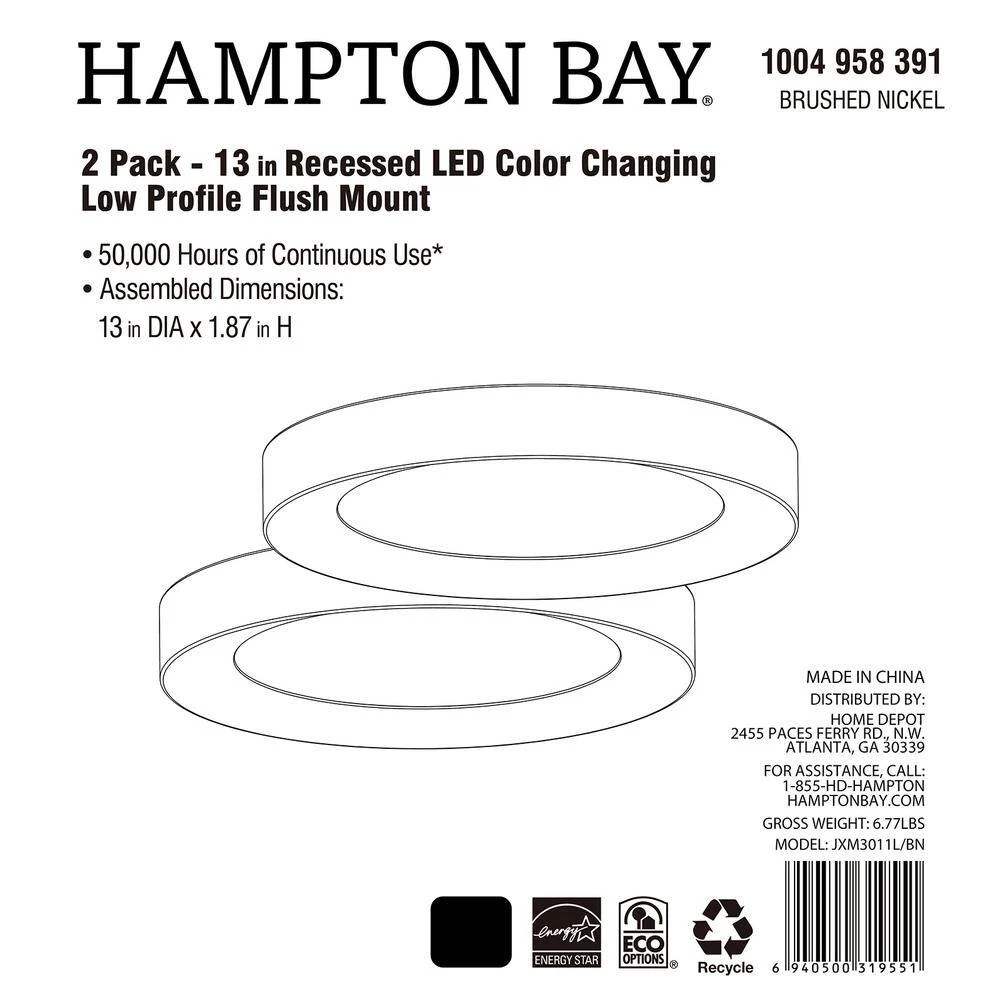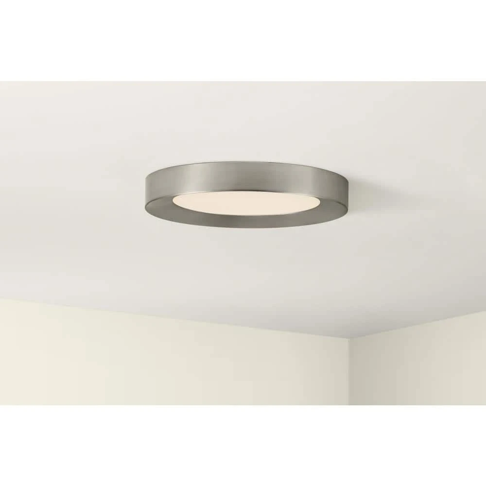 Upgrade the lighting in your home with these Hampton Bay Ceiling Flush Mount light fixtures. The brushed nickel finish, low profile and industrial design make these a perfect choice for your office or living room. The low-maintenance LED provides 120W of light while using 20% less energy than incandescent lighting. The light temperature is customizable so you’ll always have the right atmosphere for your space.