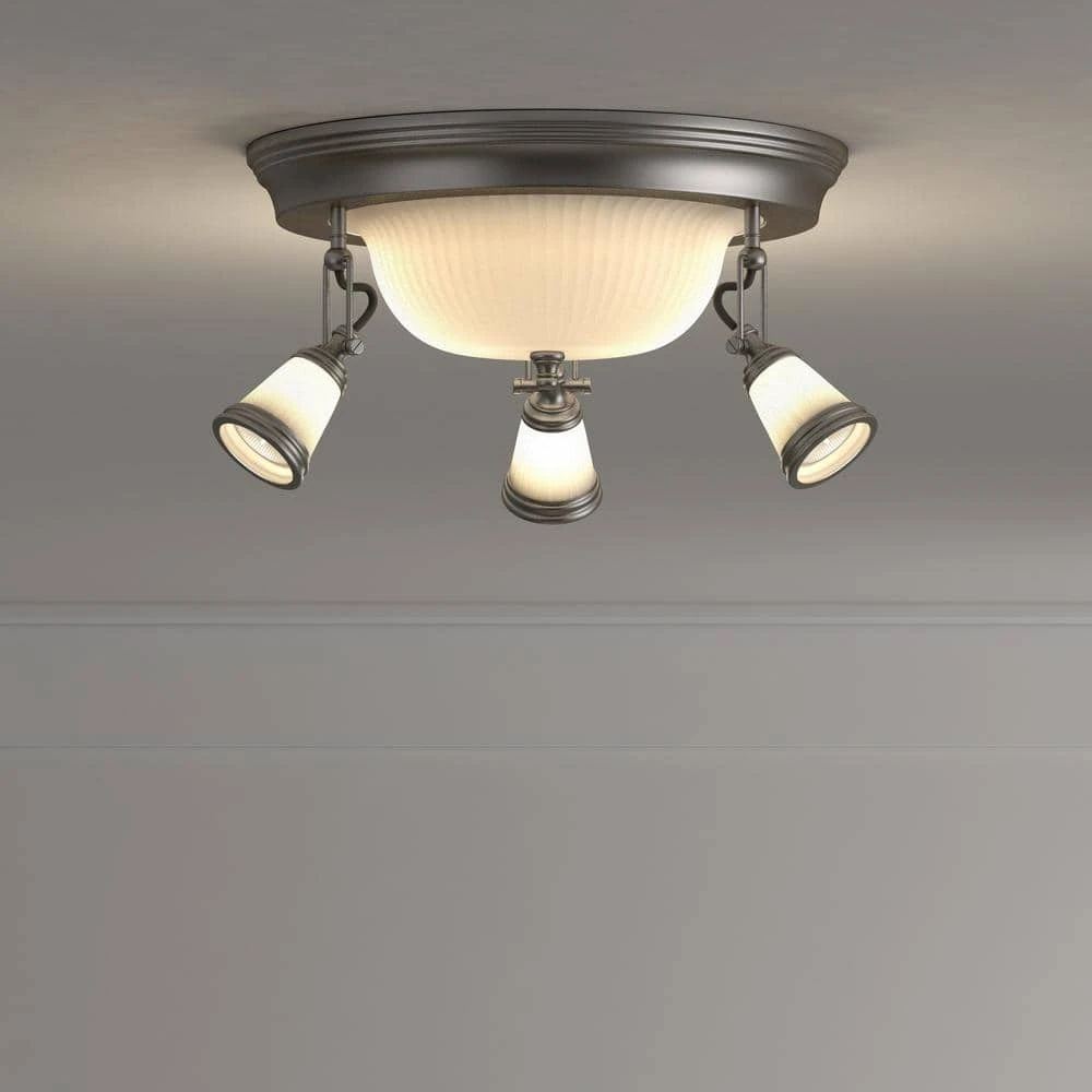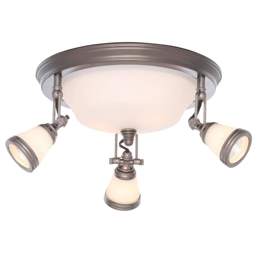 The Hampton Bay 5-Light Semi-Flush Mount Antique Pewter Ceiling Fixture will provide bright and beautiful illumination to a wide variety of living spaces. Finished in a sleek and elegant antique pewter, this fixture is multi-directional, so you can adjust the glass shades to customize light where you like it. Simple to coordinate with almost any decor, you can mix it with other antique pewter pieces from Hampton Bay for a polished and complete look. It includes the bulbs necessary to light the fixture.