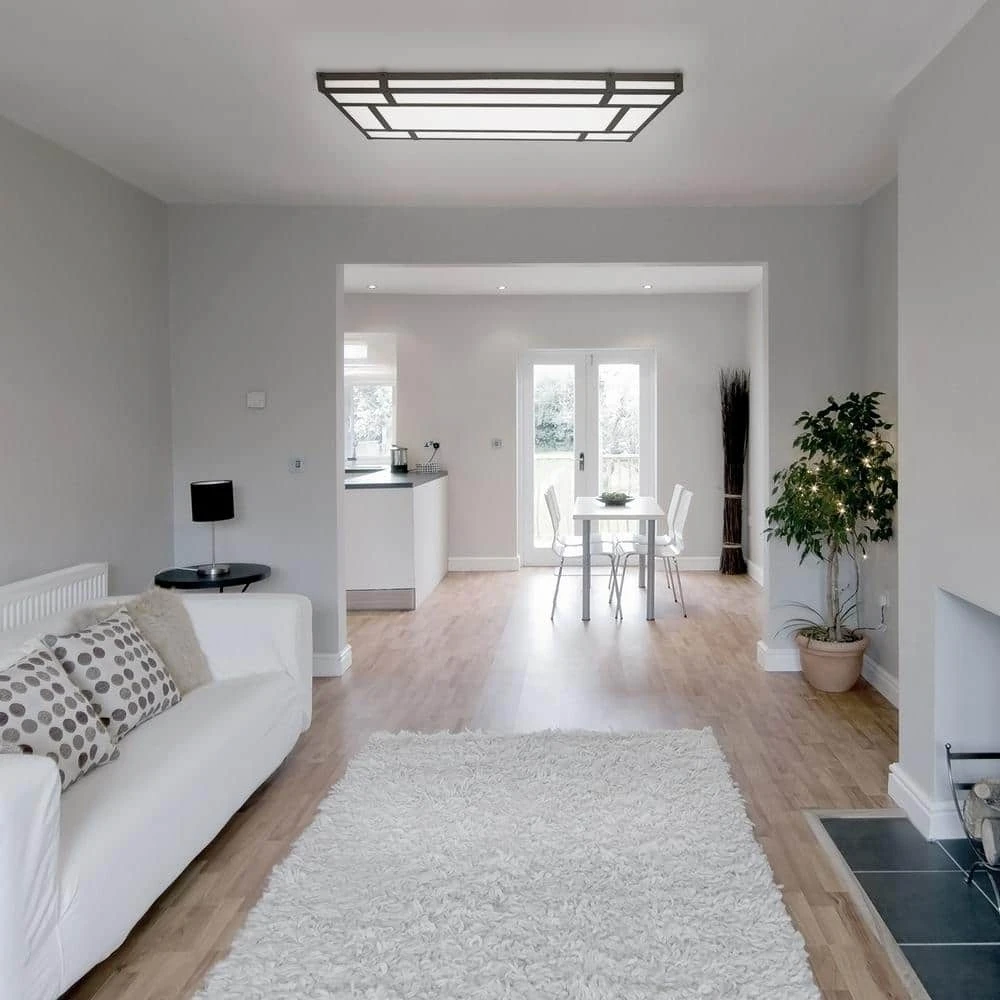 Hampton Bay LED powered ceiling light fixtures are designed to enhance any decor and with a clean, fresh appearance. This modern LED ceiling light fixture easily mounts flush with the ceiling. The protective natural iron finish will look great for years to come, and the white lens diffuses the LED light evenly. You won’t see any dark spots or shadows. This flush mount uses a LED powered lighting engine instead of light bulbs to produce higher quality light for a fraction of the electricity, saving you money off your utility bill. This light fixture produces 4,100 Lumens (about the equivalent of four 100-Watt bulbs) using only 59-Watt. The LED lighting source is made to last for 45 years at 3 hours per day; there are no bulbs to replace -ever.