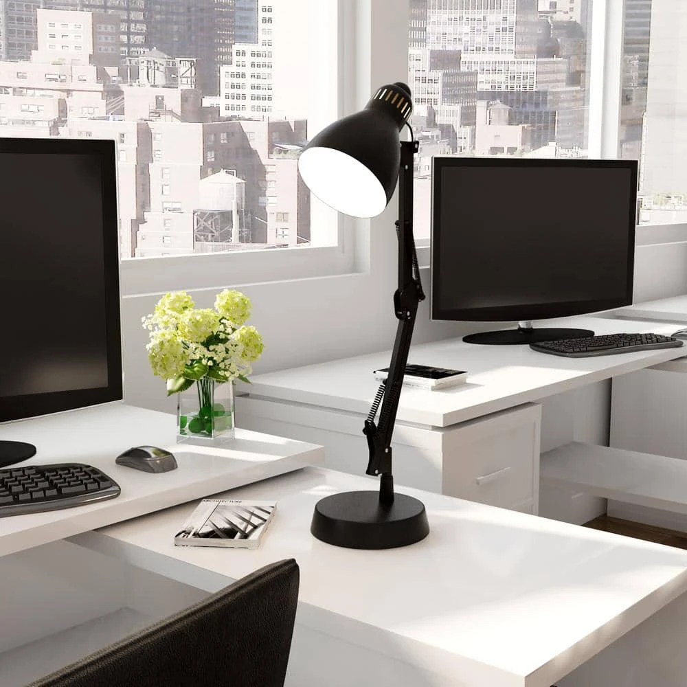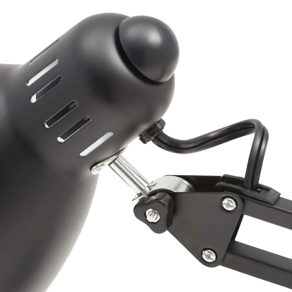 Illuminate your office, garage or workbench with the Hampton Bay 22 in. Matte Black Architect Desk Lamp. The durable, steel black shade blends with any design style. A stable weighted base helps prevent falling. Features a versatile, adjustable arm and head and is UL listed.