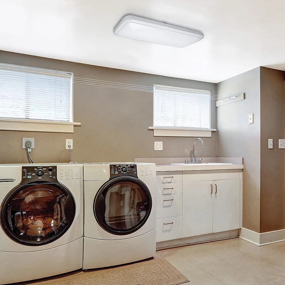 Hampton Bay’s 2 ft. x 1 ft. LED Rectangle Flush Mount Ceiling Light features classic design and high quality illumination using top of the line LED technology. This light replaces hot and harmful 64-Watt incandescent bulbs saving energy, the environment and your wallet. It emits 1500 Lumens of brightness using 20-Watt of electricity. It illuminates 4000K Bright White color temperature of light output and dimmable. It is lightweight, easy to install and maintenance free with no bulbs to replace. Ideal for a kitchen, laundry room, closet, playroom, garage, storage room, utility room or basement.