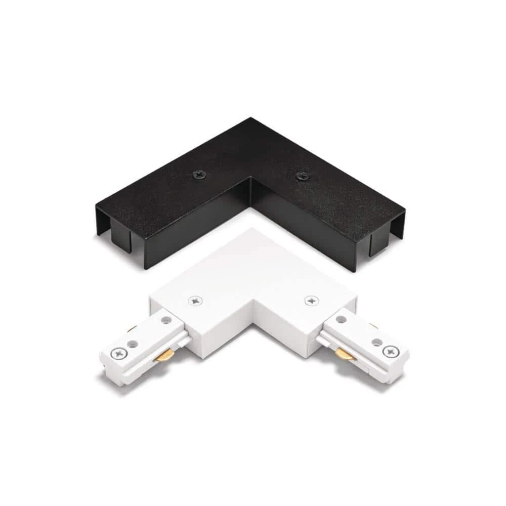 This Hampton Bay Linear Track Right Angle Coupler is used to connect 2 sections of linear track together (sold separately) forming a 90 turn. This track component features 3 BUS track connectors for use with all Hampton Bay, Commercial Electric EC/H series, 3 BUS linear track sections. Can also be used to connect multiple track kits together using a single power supply. Rated for up to 2,400-Watt. Comes in a white finish and a black finish cover to be used with either white or black finished track sections, kits, etc.