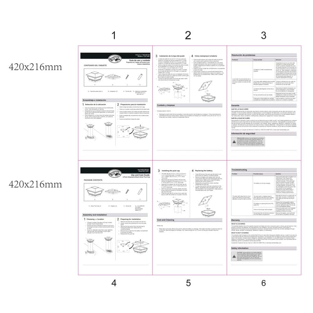 - Each box contains 2 post caps (3.5 in. x 3.5 in.) and 2 adaptors (5.5 in. x 5.5 in.)