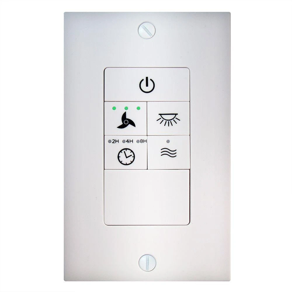 The Hampton Bay Universal ceiling fan wireless wall control adds exceptional functionality to your ceiling fan. The wall control is able to control the speed of your fan as well as control the lights of the ceiling fan with On, Off and dimming options. This ceiling fan wall control is easy to install and is compatible with LED, CFL and incandescent light bulbs. The wall control includes a walk away time delay feature that allows you to turn the light off but still have light as you leave the room. This wall control also includes a Comfort Breeze setting which randomly alternates fan speed to create an organic breeze effect. The universal design is compatible with most major ceiling fan brands including Hampton Bay, Home Decorators Collection, Hunter and many more.
