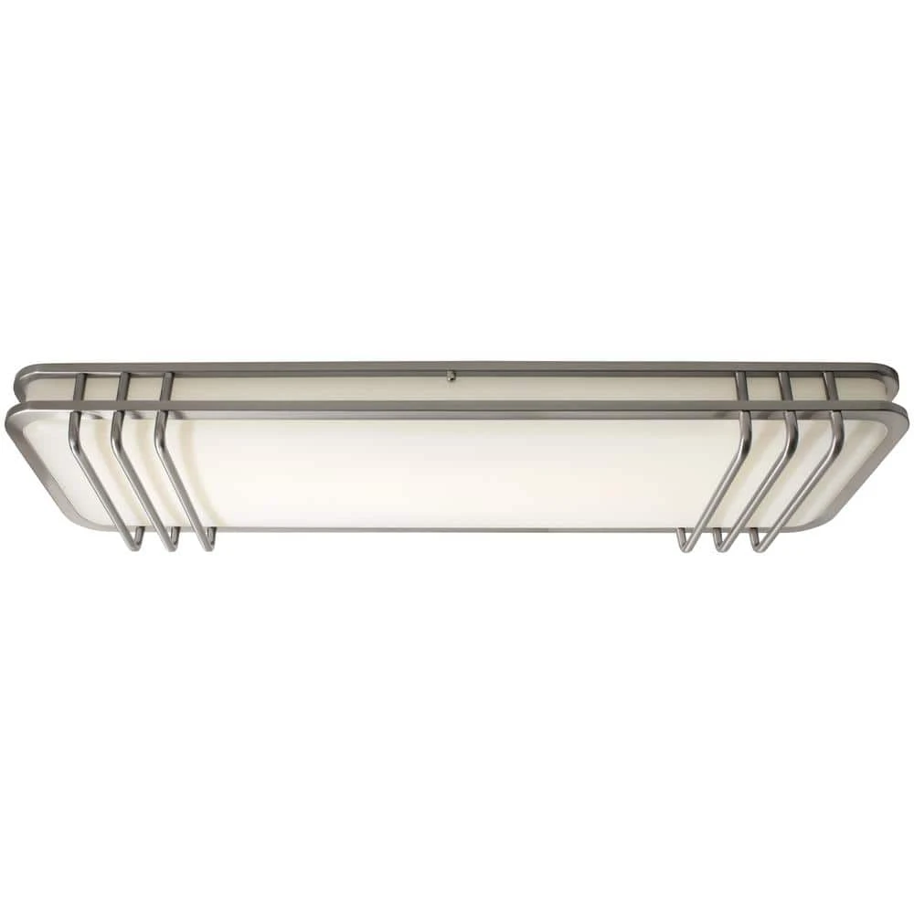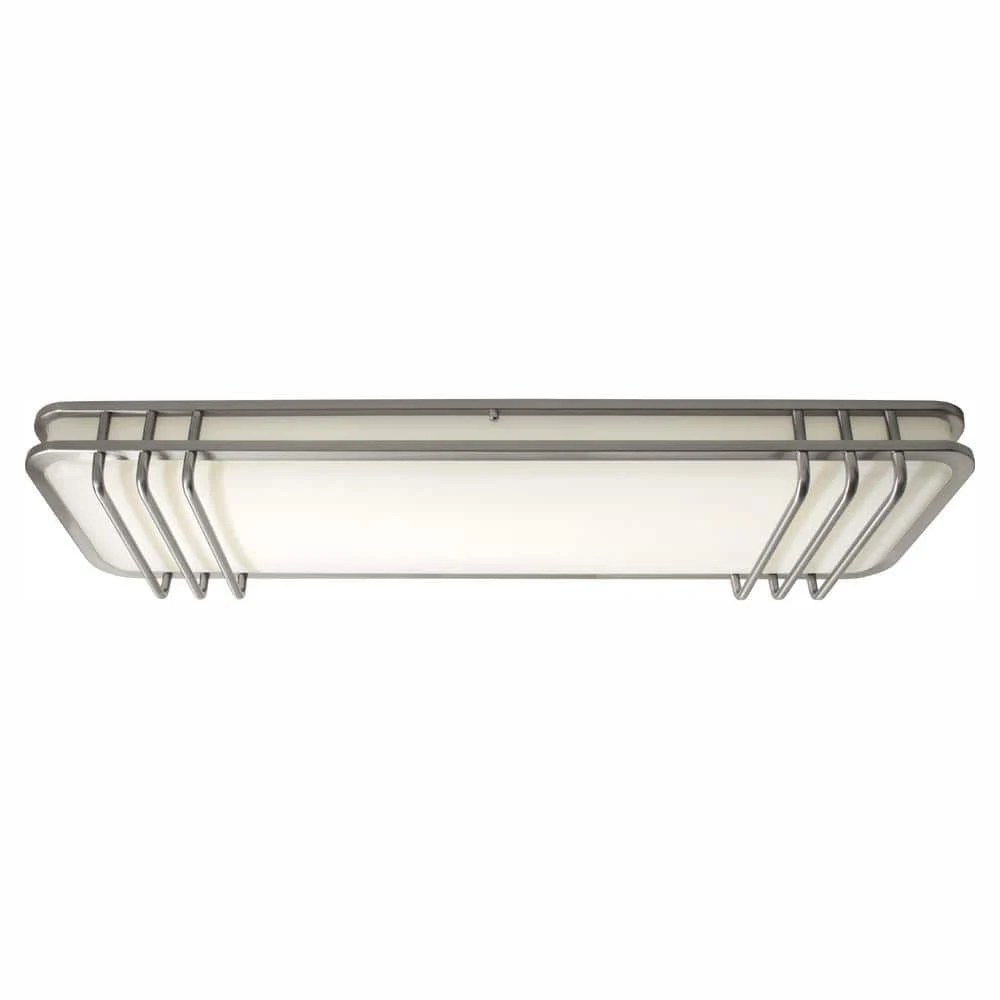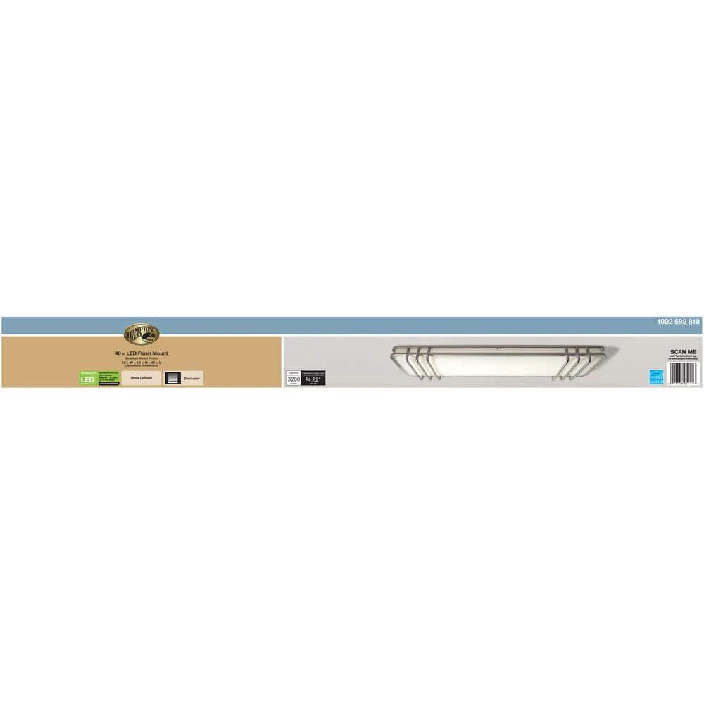 Hampton Bay LED powered ceiling light fixtures are designed to enhance any decor and with a clean, fresh appearance. This modern LED ceiling light fixture easily mounts flush with the ceiling. The protective brushed nickel finish will look great for years to come, and the white lens diffuses the LED light evenly. You won’t see any dark spots or shadows. This flush mount uses a LED powered lighting engine instead of light bulbs to produce higher quality light for a fraction of the electricity, saving you money off your utility bill. This light fixture produces 3,200 Lumens (about the equivalent of three 100-Watt bulbs) using only 40-Watt. The LED lighting source is made to last for 45 years at 3 hours per day; there are no bulbs to replace -ever.