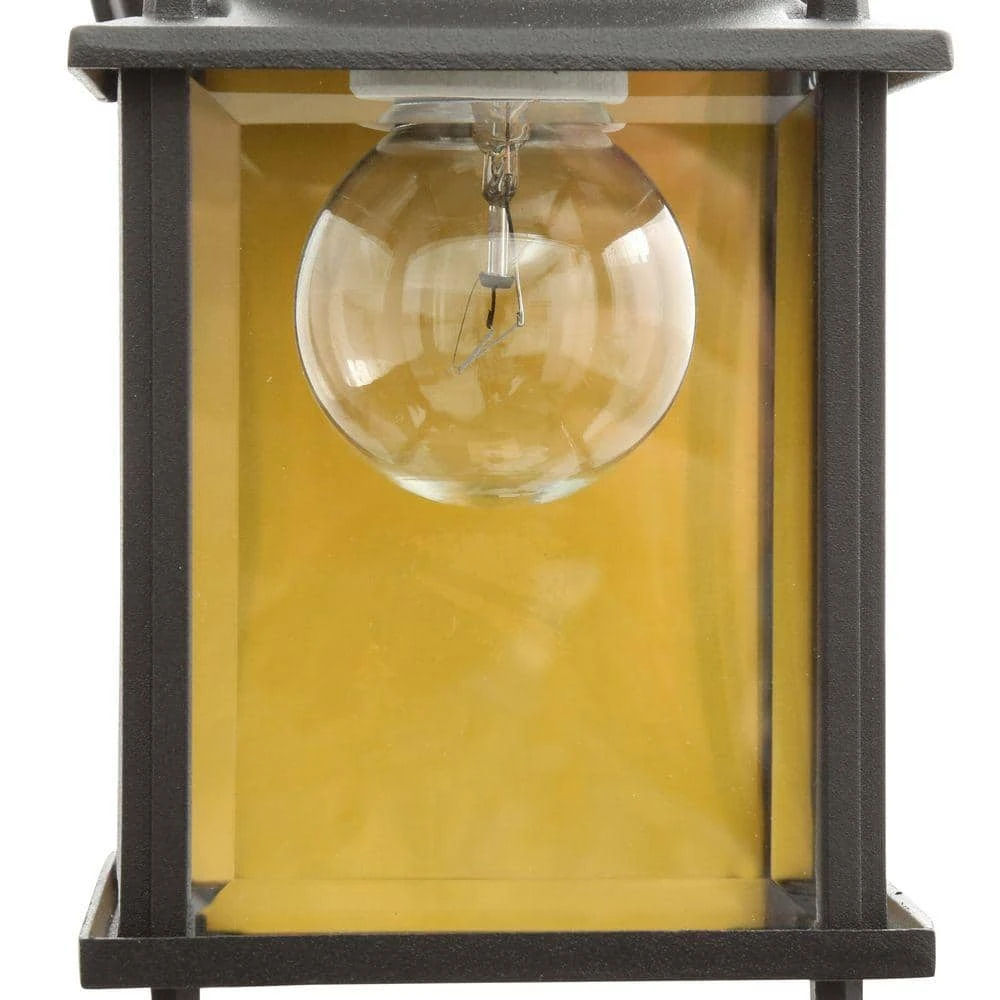 The Hampton Bay Wall-Mount 1-Light Outdoor Wall Lantern has a classic square shape and clear, beveled-glass panels in a black-finish housing. It is easy to install and recommended for side and rear entranceways. Uses one 60-Watt maximum bulb (not included).