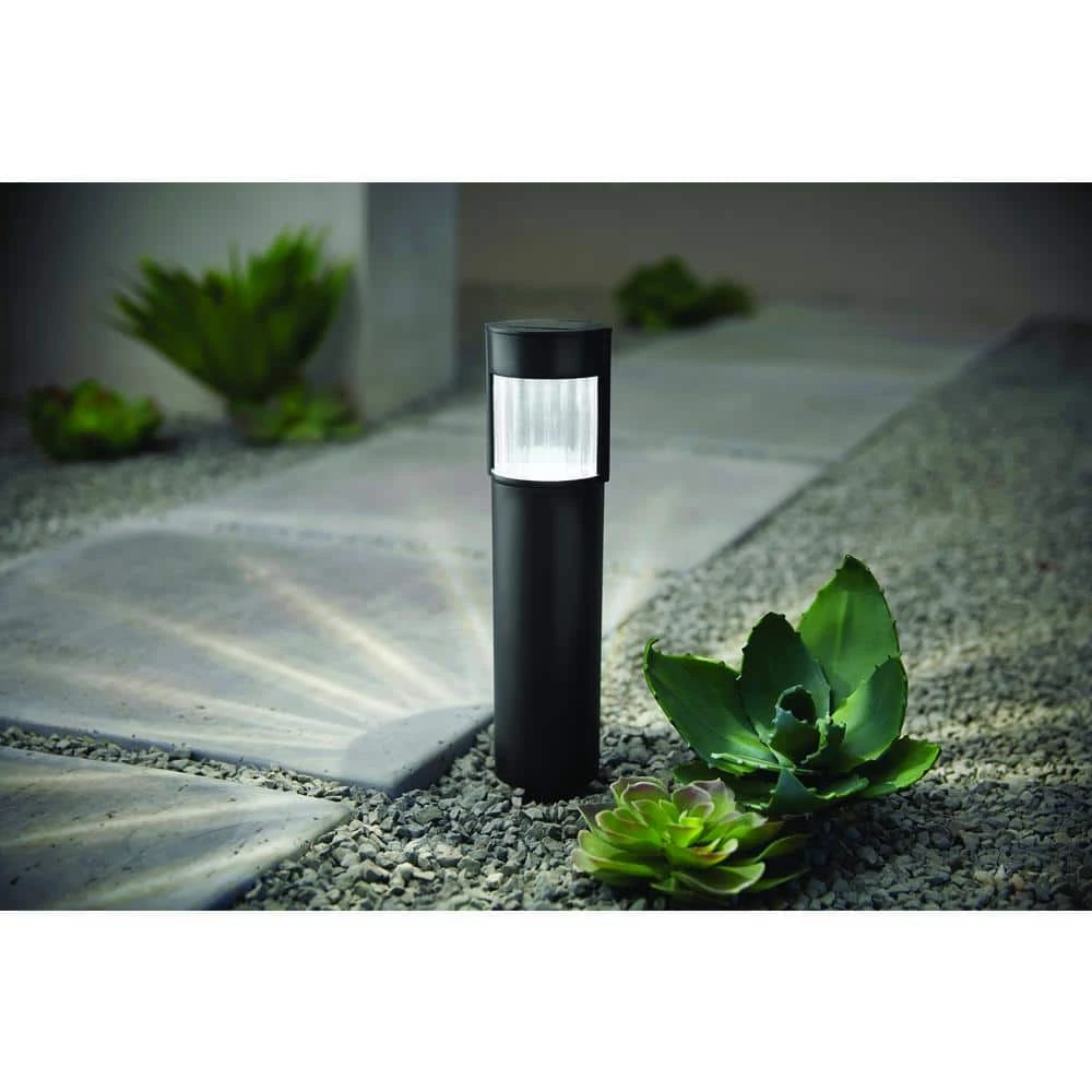 This Black Solar LED Outdoor Bollard Light features an elegant ribbed lens for a beautiful lighting effect on your walkway. The perfect way to enhance your home’s landscape, adds charm and elegance while increasing safety during the nighttime hours. Solar-powered means you can use them anywhere the sun shines. With no wiring necessary and LED bulbs, these solar path lights are easily installed and practically maintenance free.