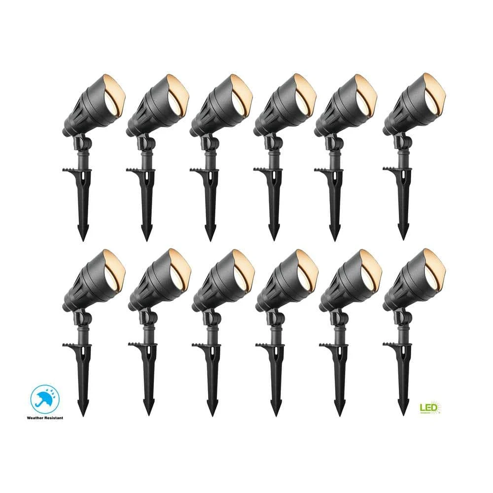 Each of the Hampton Bay Low Voltage 50-Watt Equivalent LED Flood Light (12-pack) offers the option of three light colors. The integrated switch rotates to choose from 2700K Warm White, 3000K Soft White or 4000K Daylight light color. The flood beam angle is perfect for highlighting wide areas, as well as enhancing home security. On any of the 3 light color settings, it consumes over 80% less energy than a typical halogen light and has a rated life of 50,000 hours. The LED system provides maintenance free operation and there are no bulbs to change. With cast aluminum construction, long life powder coat finish and weatherproof electronics, you can count on many years of service. The quick-install wire connector means easy do-it-yourself installation that is quick and safe.
