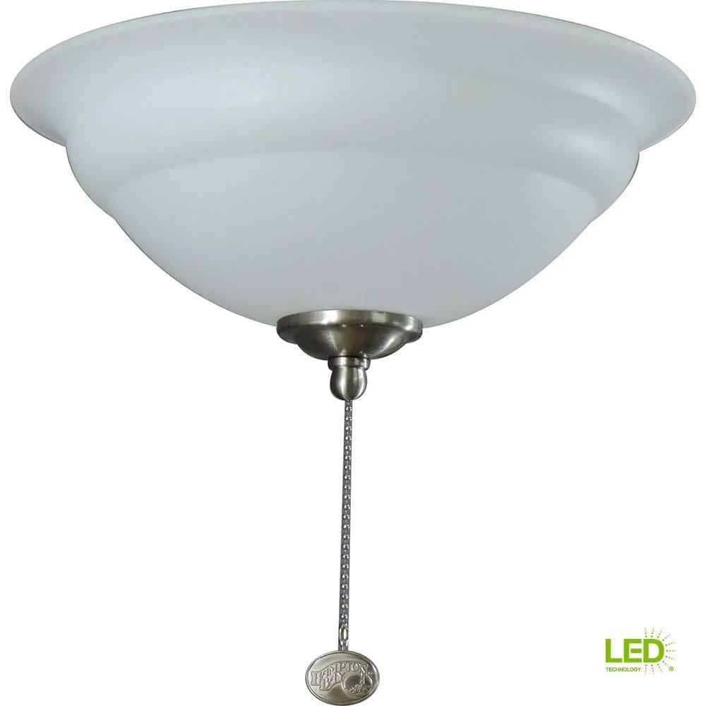 The Hampton Bay Universal Light Kit is designed to complement your ceiling fan and add functionality. This light kit includes both oil-rubbed bronze and brushed nickel hardware to easily match your ceiling fan’s finish. The universal design is compatible with most ceiling fans. Includes (3) 9.5-Watt LED bulbs.