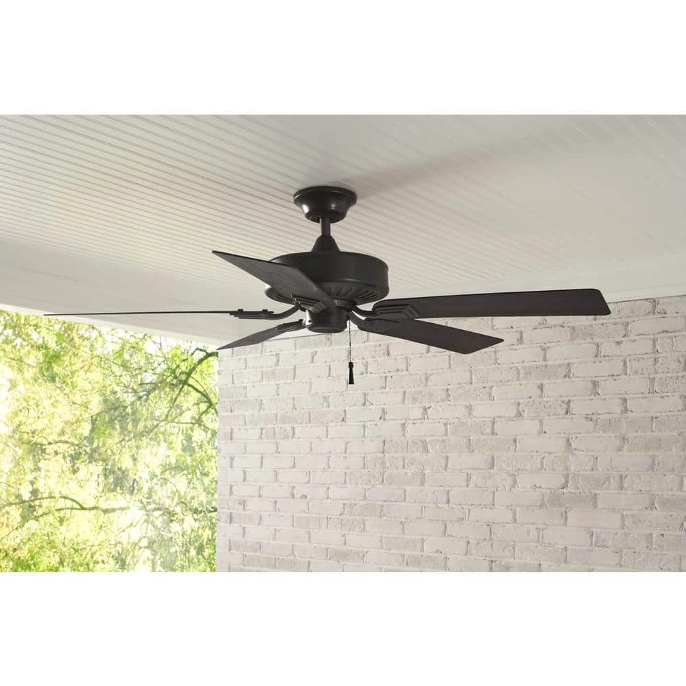 This smart home bundle pairs the Barrow Island fan with the Universal Smart Wi-Fi 4-Speed Ceiling Fan Remote control, powered by Hubspace technology, to provide an easy way to integrate your fan and lights into your smart home system. The included Universal Smart Wi-Fi Remote control (shipped separately) converts your ceiling fan into a smart ceiling fan, by providing control access from anywhere via a smart device and an internet connection. Easily integrates with Google Assistant and Alexa. The Hampton Bay Barrow Island 52 in. Indoor/Outdoor Natural Iron Ceiling fan is perfect for both indoor and covered outdoor areas and is non-corrosive. Has 5 weather resistant reversible blades with either bead board or grain finishes. With its trimount installation you can mount this flush mount, standard or angle mount.