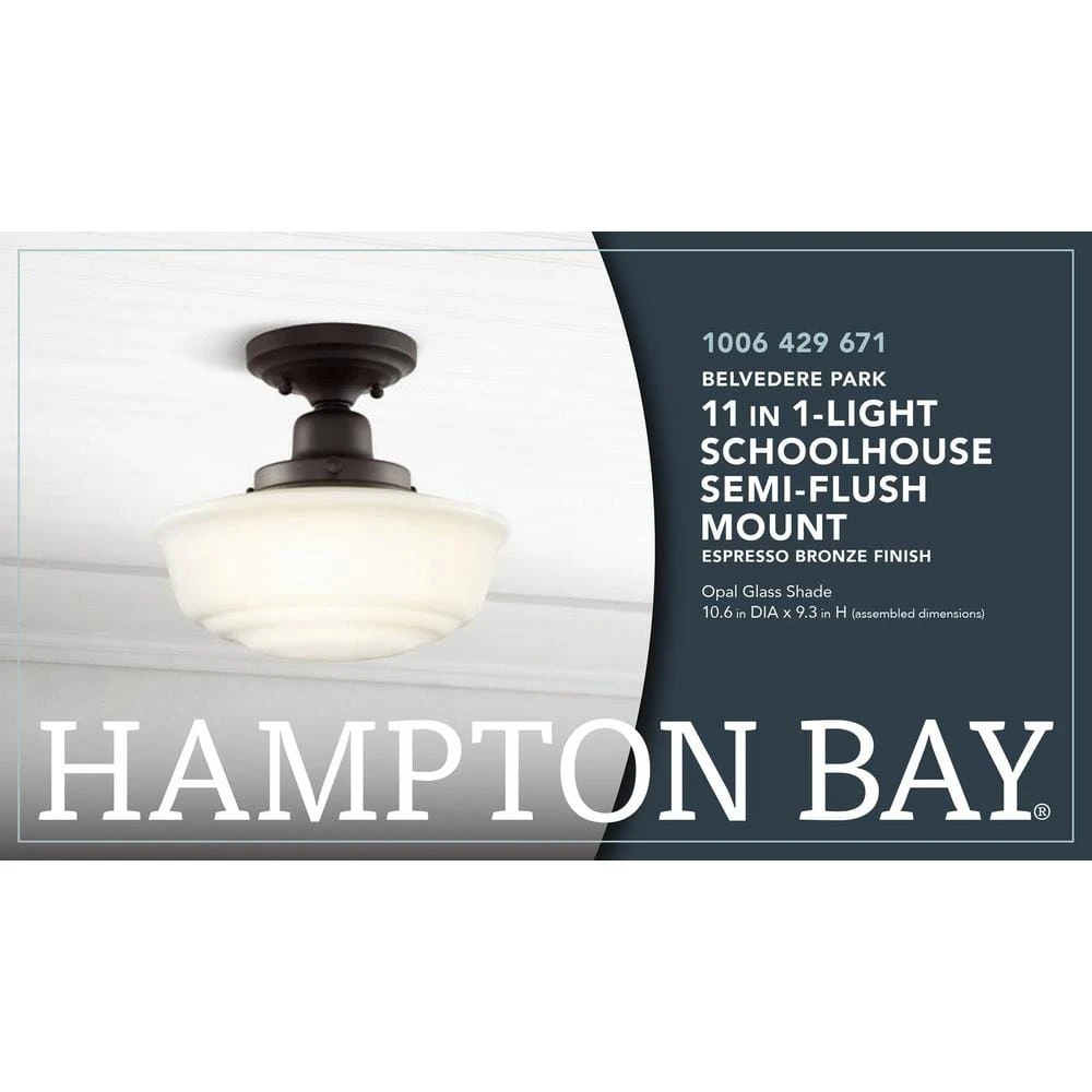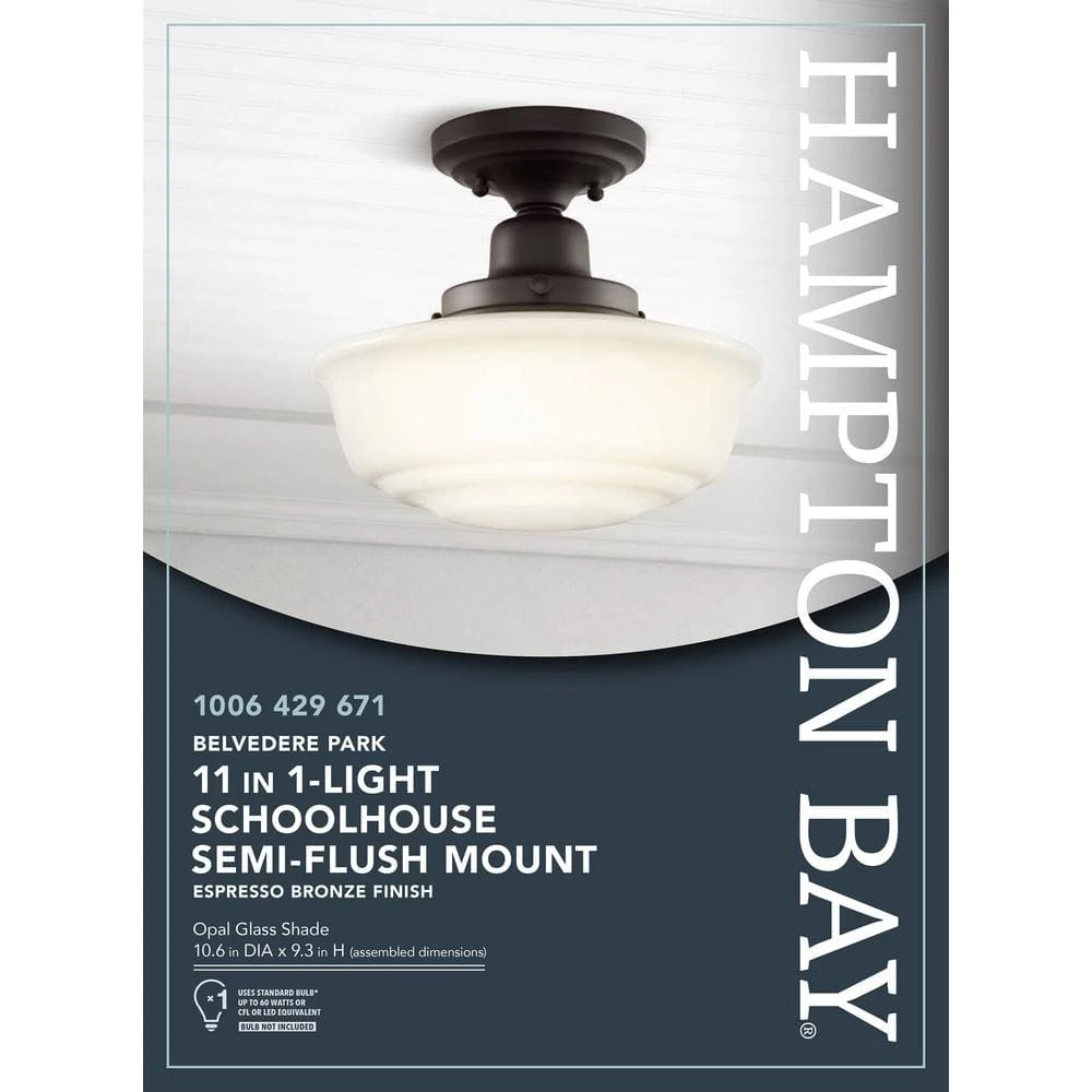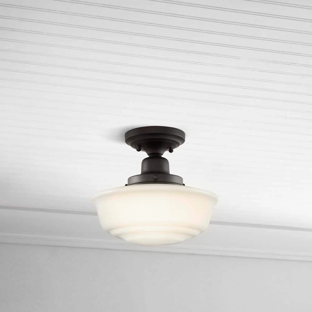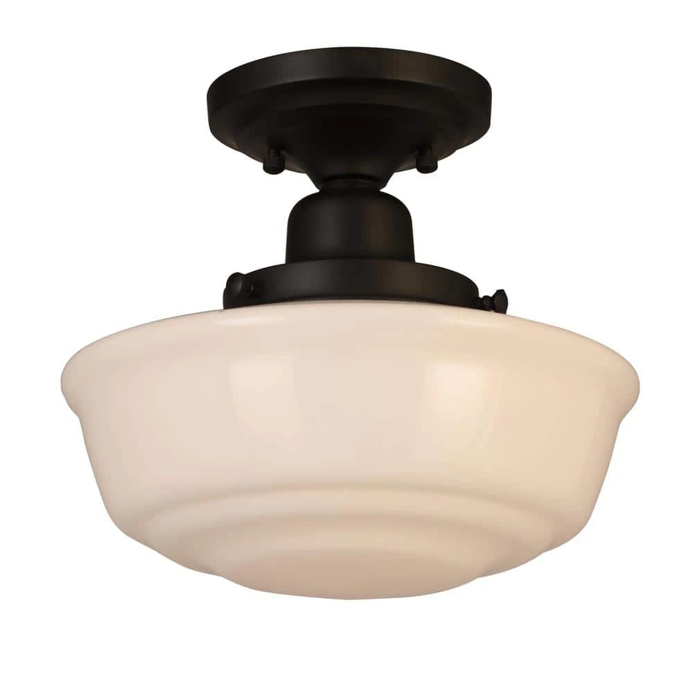 This classic schoolhouse semi-flushmount design with updated modern aesthetics will inspire your creativity and allow you to envision endless possibilities for lighting in any of your favorite spaces. Hand-painted in Expresso Bronze finish with a blown opal glass shade. with a perfect balance of vintage and modern, you can use this versatile fixture with styles such as industrial, modern and vintage.
