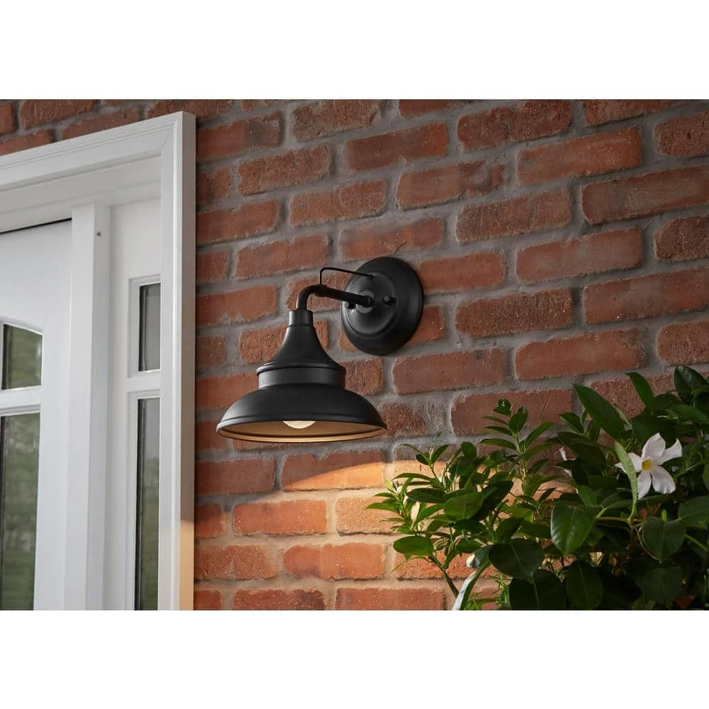 The Hampton Bay Outdoor Black Barn Light Wall Sconce is designed with a beautiful Black finish that will enrich your home’s appearance with a days gone by look. Painted in rich deep Black, the wall light offers illuminating ambiance and appearance to any given outdoor area. Uses 1-60-Watt maximum standard medium base bulb or CFL equivalent (not included). Compatible with Vintage Edison or LED bulbs.