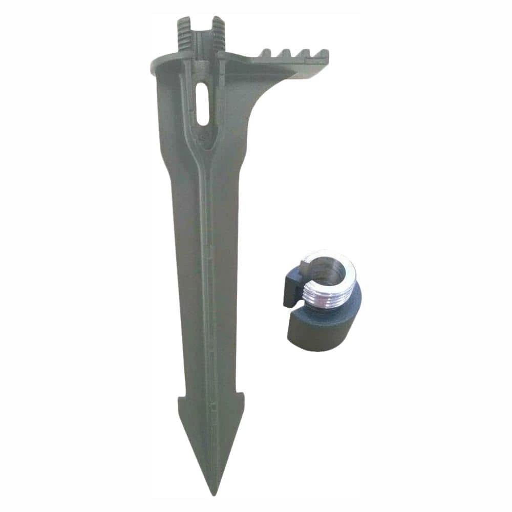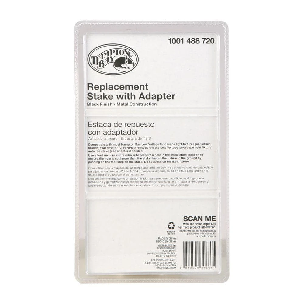 The Hampton Bay Black Replacement Stake with Adapter is a heavy-duty, cast-aluminum design that fits most current Hampton Bay landscape lighting. Durable and weather resistant, the stake also includes an adapter to fit a wide range of low-voltage fixtures from other brands sold at The Home Depot (including Malibu). The adapter is easy to install with a cleated foot design that fits snugly in the ground to keep your fixture in place.