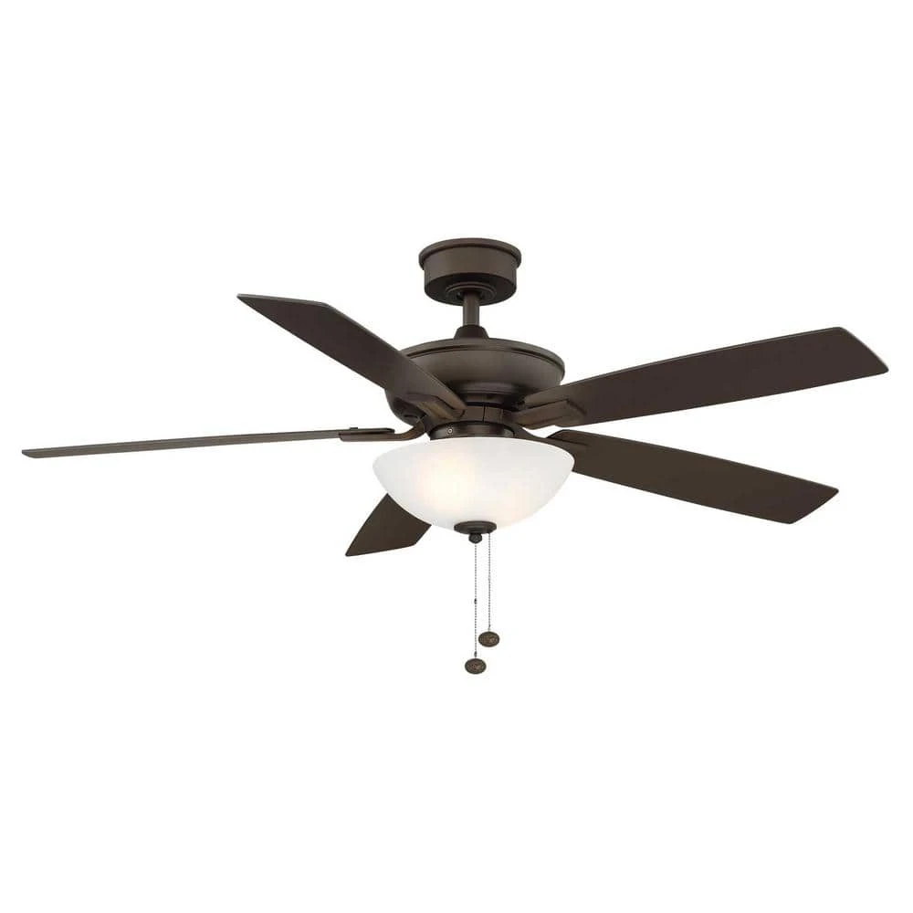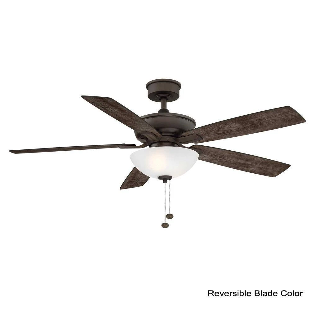 Add a classic touch to your space by installing this Blakeford 54 in LED Espresso Bronze DC Motor Ceiling Fan with Light. The fan boasts reversible expresso bronze/seasoned wood blades, frosted white glass and a pull chain operation. Prepare to cool off your indoor space with this stylish fan featuring three mounting options and medium density fiberboard blade material. Style and functionality come together with this fan considering its EPA approval and rustic style. DC motor fans are 70% more energy efficient than AC motor fans (when comparing efficiency (CFM/W) of DC vs AC motors in published FTC Energy Guides for ceiling fans).