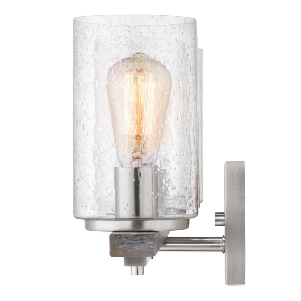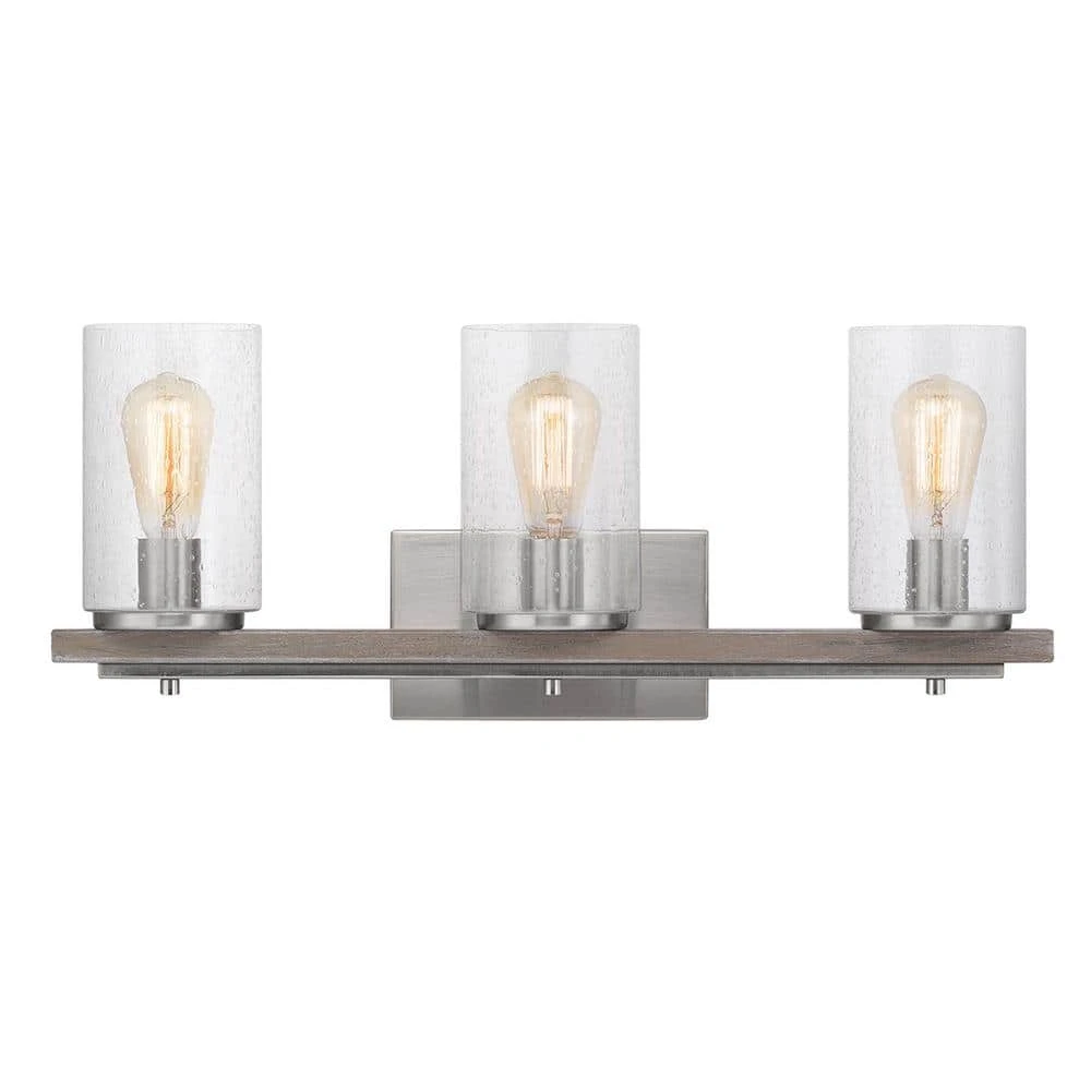 Featuring handsome and sophisticated details, the Boswell Quarter collection is ideal for a variety of design styles – from Transitional to Modern Farmhouse. Clear seeded glass shades are paired with a Brushed Nickel finish and weathered gray wood accents. Form follows function in this 3-light bath and vanity design, which can be mounted facing up or down for added customization.