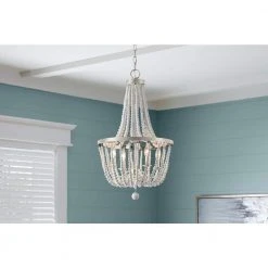Adelaide 4-Light Weathered White Wood Bead with Brushed Nickel Chandelier by Hampton Bay