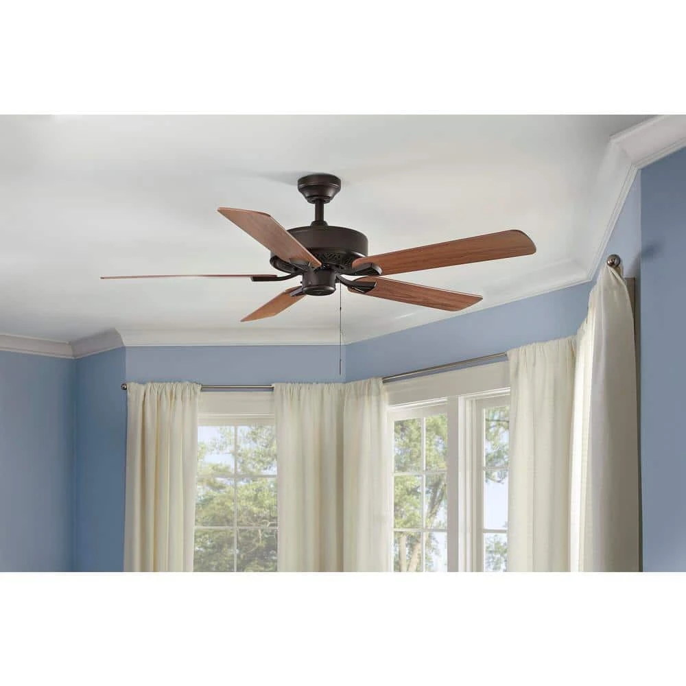 The Hampton Bay Chatfield 52 in. Ceiling fan offers a transitional look with the classic Oiled Rubbed Bronze Finish. The blades are reversible with 2 colors to choose from that include Dark Walnut and Medium Maple. The fan is a 3 speed reversible whisper quiet motor with a Lifetime warranty.