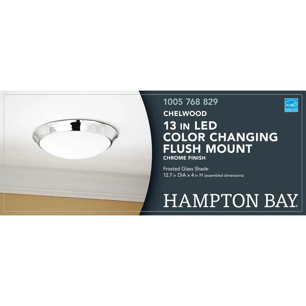 The technology of this 13 in. 25-Watt Chrome Ceiling Flushmount has a 90 CRI high color rendering that creates a perfect illumination and makes this fixture completely glare free providing more natural light for your home or office. The long-lasting LED technology provides light output equivalent to 180-Watt of traditional incandescent lighting, while using less than 20% of the energy for year round savings. If features a selectable color temperature feature which allows you to choose your preferred white light color: soft 2700K, warm 3000K, bright 3500K, cool 4000K, or daylight 5000K. Enjoy a 5-year warranty and a rated life of 45-years or 50,000-hours of continuous use. The Energy star certified light source is maintenance free with no bulbs to change.