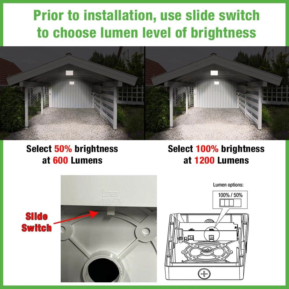 - LUMEN BOOST OPTION: High 1200 Lumens for 100% brightness and Low 600 Lumens for 50% brightness