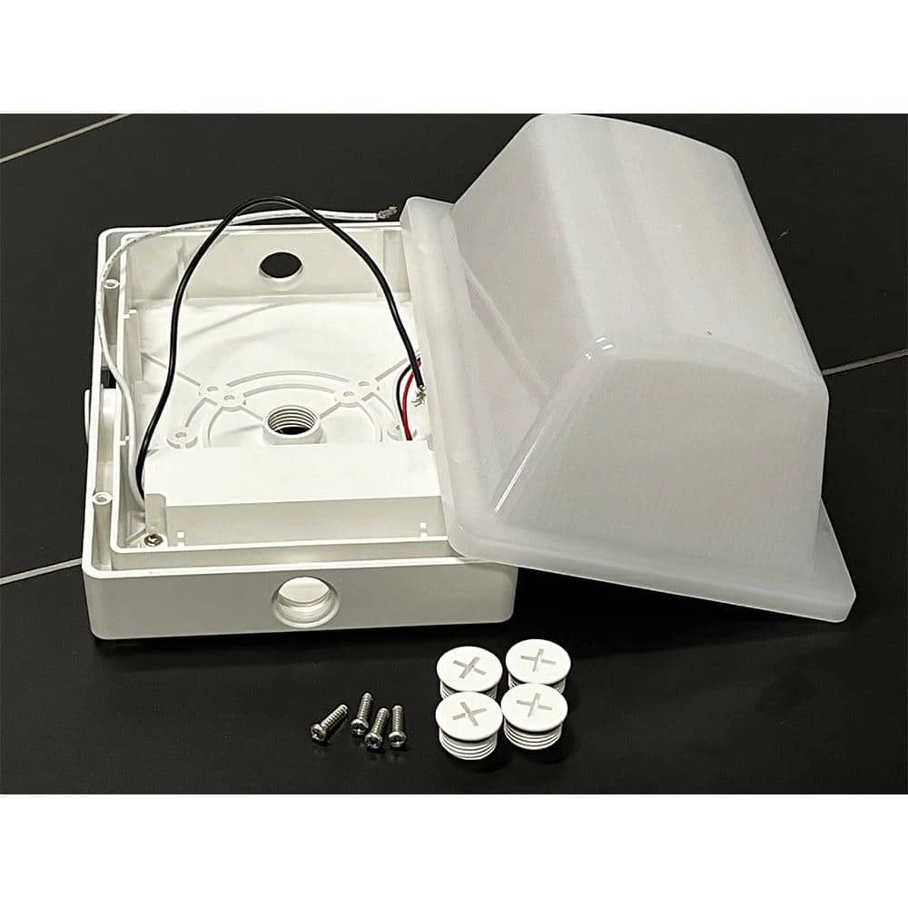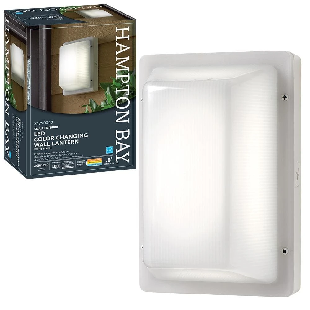 Hampton Bay Coastal Block Style (Rectangle) LED Outdoor Bulkhead light is versatile, durable and made to withstand anything Mother Nature can deliver. It is perfect for extreme weather environments requiring impact resistant, rust and corrosion-resistant polycarbonate lens and base. This light replaces outdated yellowing incandescent or halogen lights with high quality energy-efficient integrated LEDs and driver. Prior to installation, choose between (3) color temperatures of light output: Soft White, Bright White or Daylight depending on your location. In addition, this light offers 2 levels of lumen boost brightness options for security and accent lighting. This durable and robust LED fixture is maintenance free with no bulbs to replace for up to 50,000 hours or 25 years. It is ideal for uncovered deck, patio, carport or detached garage and for more challenging outdoor locations such as coastal areas, beach house, piers, walking bridge, walkways, loading docks, restaurant garbage disposal areas, office parks, schools and universities.