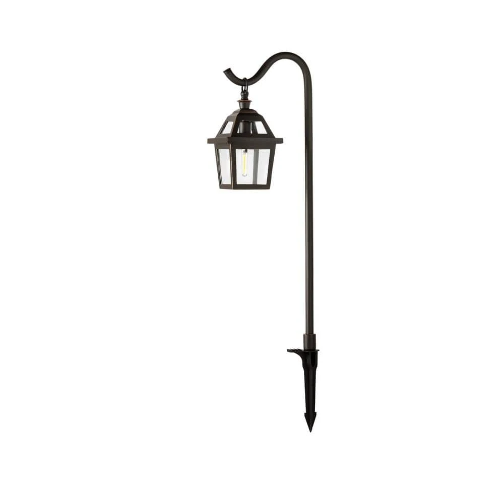 This Hampton Bay Outdoor Path Light provides the same bright light as a typical halogen landscape light, but uses over 80% less energy. The path light is supplied with a 1.39-Watt replaceable authentic vintage filament LED light bulb. Combination of the LED filament lamp and glass create a warm and inviting atmosphere in your landscape. The hand applied Oil Rubbed Bronze finish will add an elegant Old World look to your landscape. Top-quality features include cast-aluminum construction, a long-life powder-coat finish, weatherproof electronics, and a quick-install wire connector. Do-it-yourself installation is fast, easy, and safe. This fixture’s light creates a beautiful pattern of soft light that can illuminate steps, pathways and smaller plants, offering a valuable outdoor security feature for your home.