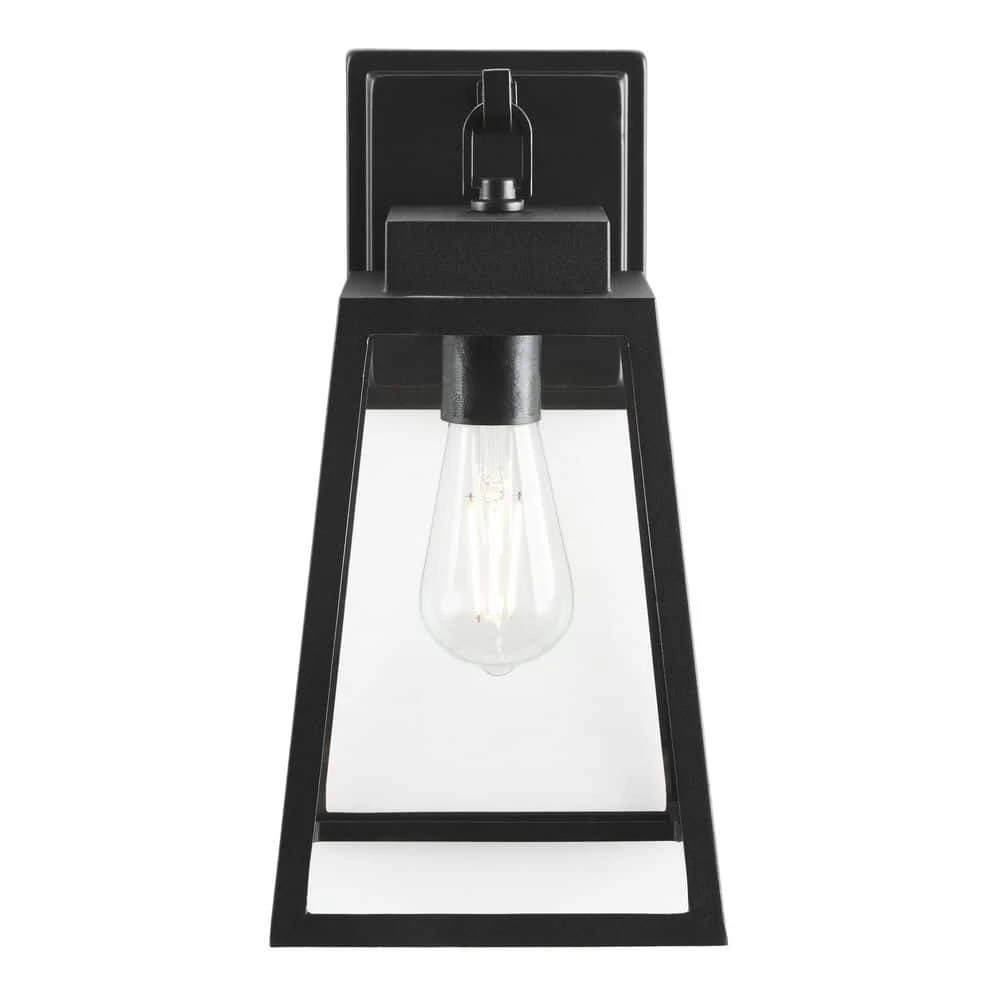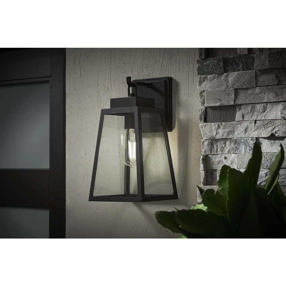 Define your exterior area with classic form and function. This stately lantern-style light provides a sophisticated elegance with its quintessential, tapered silhouette and traditional black finish. with a lustrous glow and exceptional versatility, this wall light brings style and luminescence to any exterior setting.