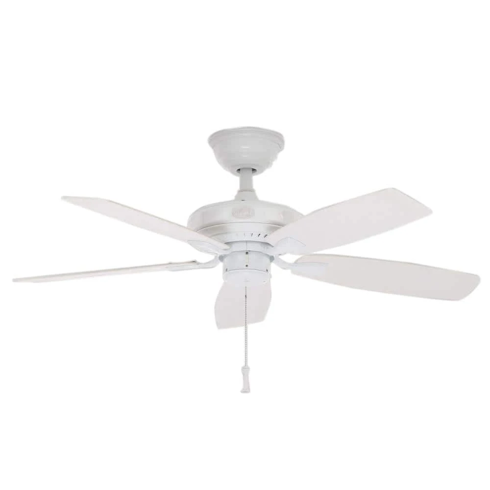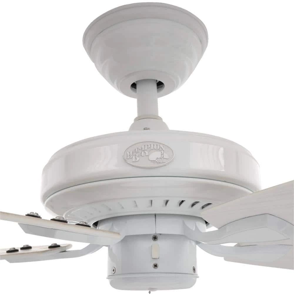 The Hampton Bay Gazebo III 42 in. Matte White Ceiling Fan features 5 reversible, weather resistant blades in white and light gray finishes adding style and comfort to your patio, deck, bathroom or closet. This fan offers 3-speeds and a reverse switch, so you can select the desired speed and direction of airflow. The Gazebo III can be adapted for use with a light kit and remote control. Ideal for small rooms, this fan offers quiet operation.
