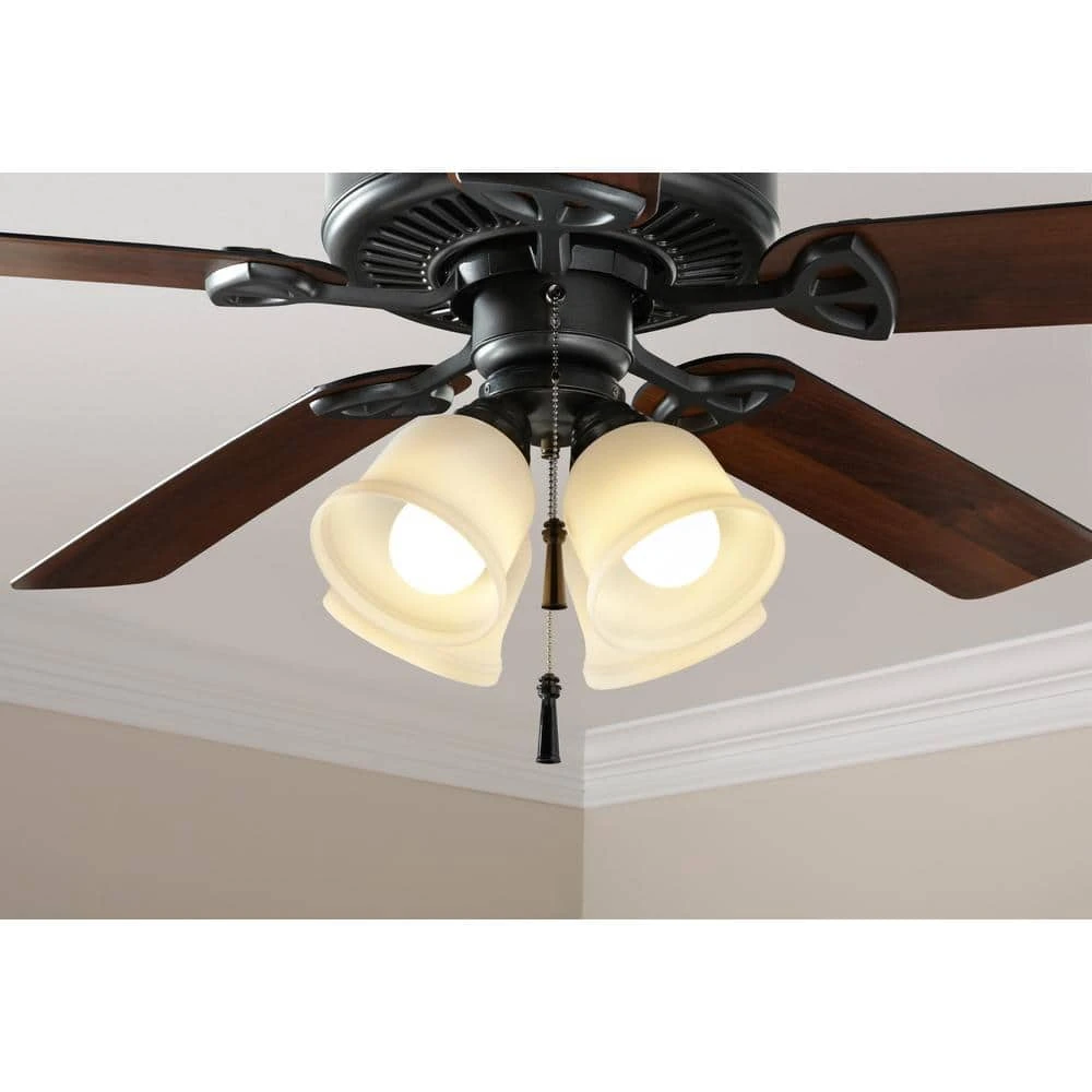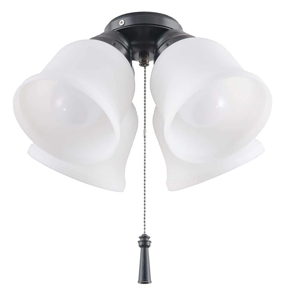Brighten up your living space with the Hampton Bay Universal Ceiling Fan Light Kit. This ceiling fan light kit is wet rated for outdoor use, but it can also be installed indoors to add light to any room. The universal ceiling fan light kit includes shatter resistant plastic light shades and (4) LED bulbs.