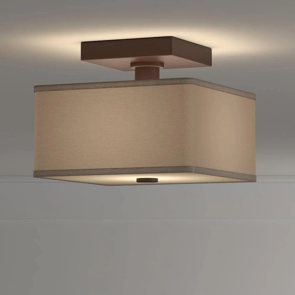 Transitional styled, the 2-Light Oil Rubbed Bronze Glenburn Semi-Flush Cube from Hampton Bay will complement many home styles and decor. Featuring a rich and warm oil-rubbed bronze finish, the complementary golden silk fabric shade offers an aesthetic appeal and provides generous and gorgeous illumination. Perfect for eat in kitchens, dining rooms, basements, bedrooms or foyer applications, this cube-shaped fixture is easy to install and easy to coordinate with other Glenburn Collection pieces.