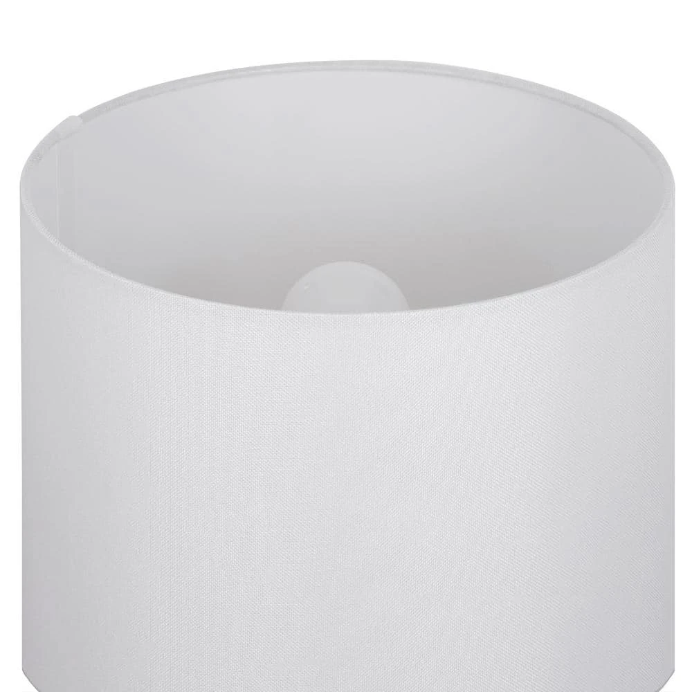 - Classic white linen drum shade is slightly tapered outward to provide ample lighting without harsh glare