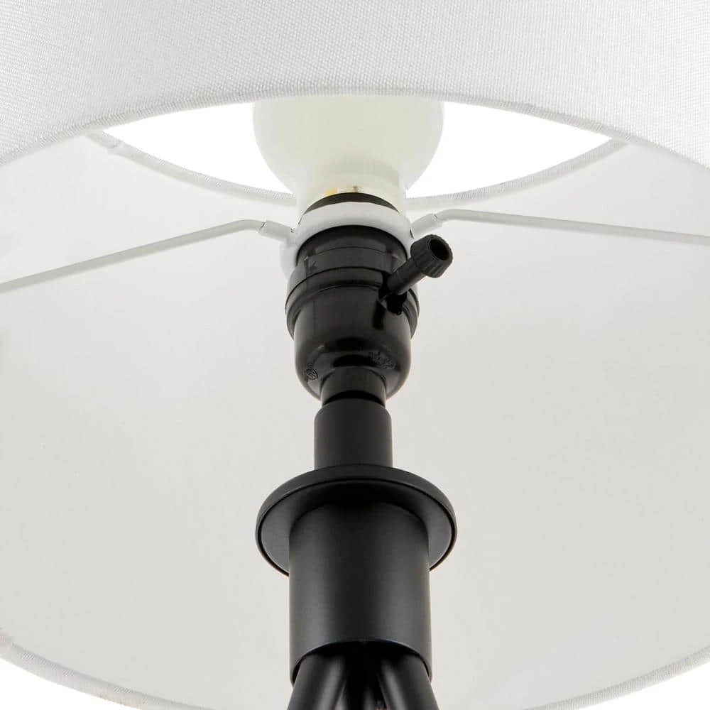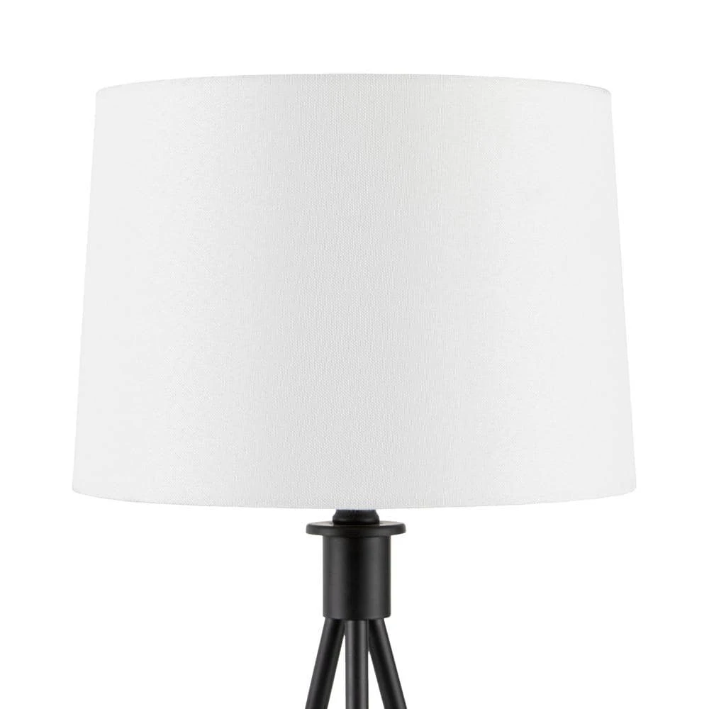 Brighten your space with the mid-century inspired Hampton Bay 23.75″ Metal Tripod Higgins Table Lamp. This lamp features a sturdy metal tripod frame in modern black satin finish, with a matching black metal lamp neck for a seamless and elegant look. Topped with a 12″ wide white linen drum shade, this lamp provides ample ambient lighting without harsh glare. Uses one standard A19 E26 light bulb, max 9-watt LED or 60-watt incandescent (light bulb not included). A black 60″ power cord completes the lamp’s contemporary look.