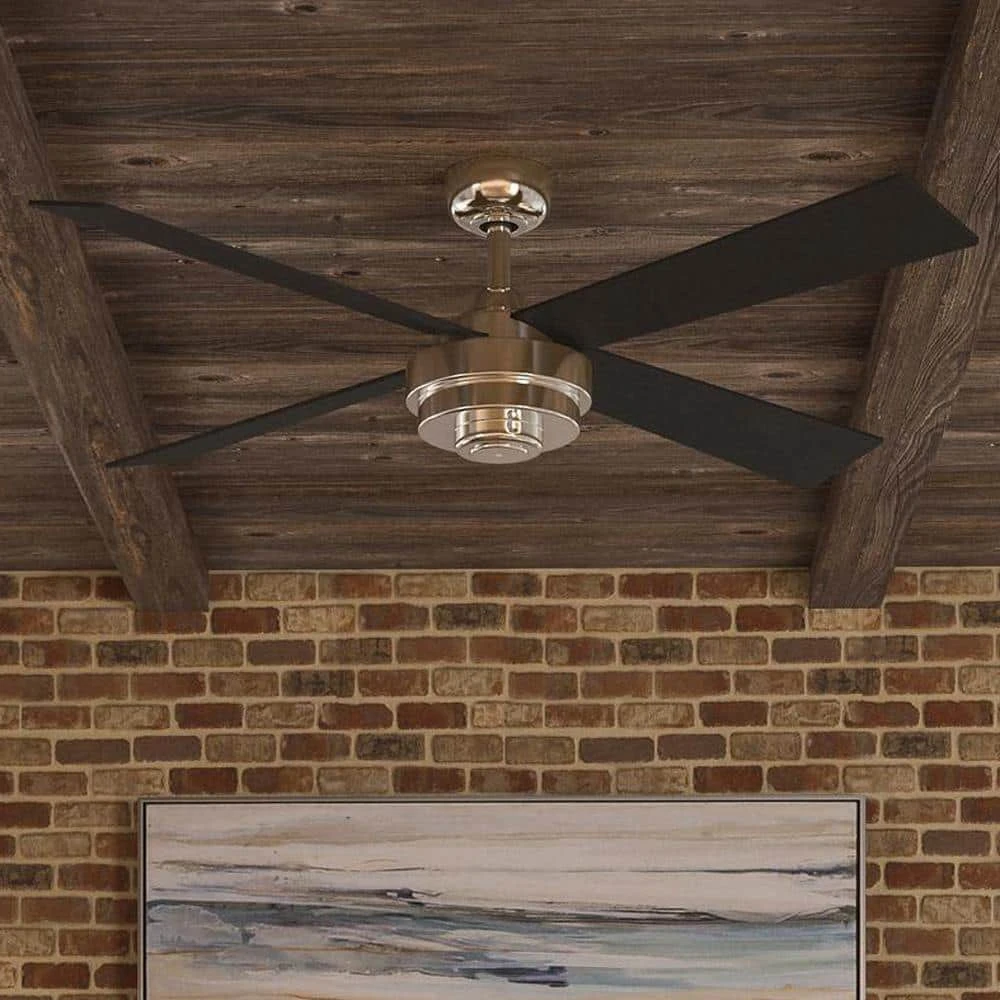Bring a refreshed look to your space with this Kemper II 52 in. Indoor Liquid Nickel Ceiling Fan with Remote Control. It features reversible silver/black blades, a powerful motor and an industrial look. This works well in medium to large size rooms