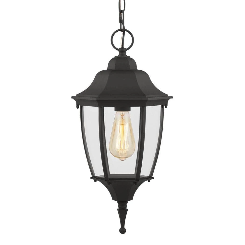 This classic French style hanging lantern has simple clean lines with beveled glass panes creating a timeless design. Unique vintage Edison bulbs can be used to complete the traditional look. It’s cast aluminum construction is rust resistant. in a matte black finish, this timeless design will enhance any exterior decor.