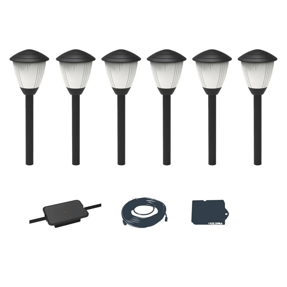 - Kit includes 6-pack LED pathway lights, 1-pack control box, 1-pack 12-Watt transformer, 1-pack 50 ft. 18AWG SPT-2-Watt cable