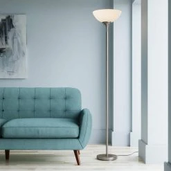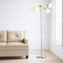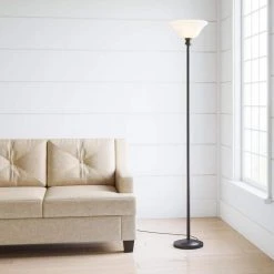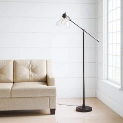 59 in. Oil-Rubbed Bronze Swing-Arm Floor Lamp with Cream Fabric Drum Shade by Hampton Bay