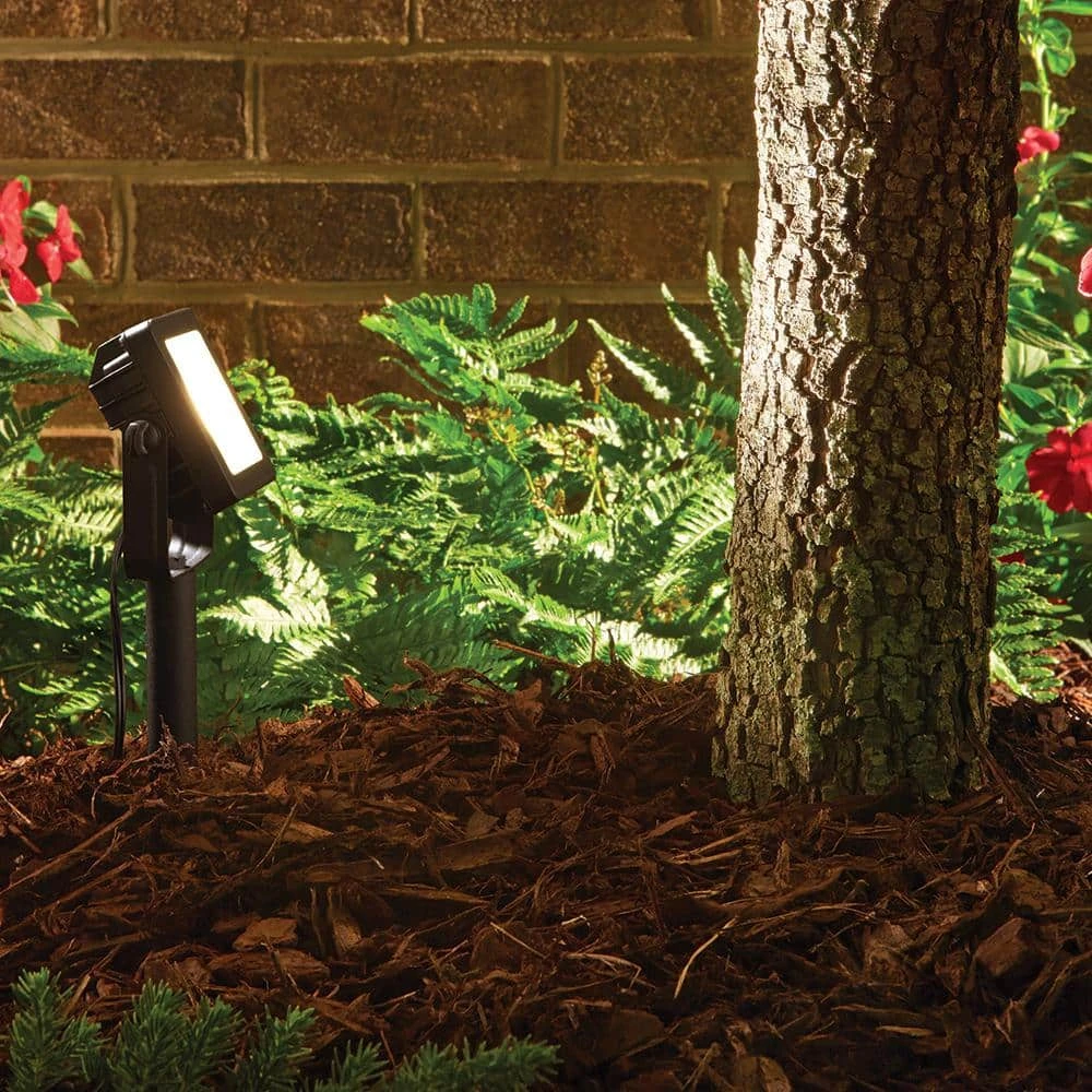 Powerful 350 Lumens LED landscape Flood Light can be used to draw attention to architectural features or highlight landscaping and plants. Swivel Head provides maximum adjustments for precise positioning of lighting. Cast aluminum Construction with black powder coat finish and textured Glass Lens will last for years.