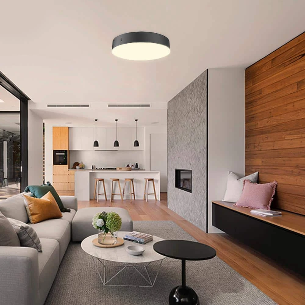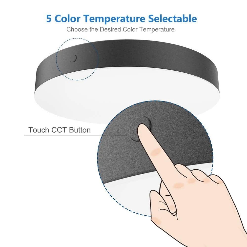 The 11 in. Luis Integrated LED Flush Mount from Hampton Bay with a matte black finish is a great addition to any room. You can easily adjust the light color between 2700K (Warm White), 3000K (Soft White), 3500K (Neutral White), 4000K (Bright White) or 5000K (Daylight) by simply touching the button on the edge of the fixture. The light has a full brightness of 1000 Lumens and is also dimmable to your desired brightness level. It is maintenance-free and lasts up to 45-years. All hardware is included for easy installation and this light is supported by a 5-year warranty and is also ENERGY STAR rated.