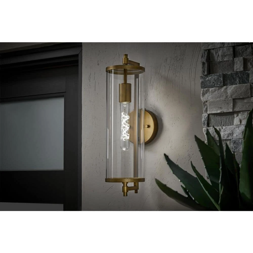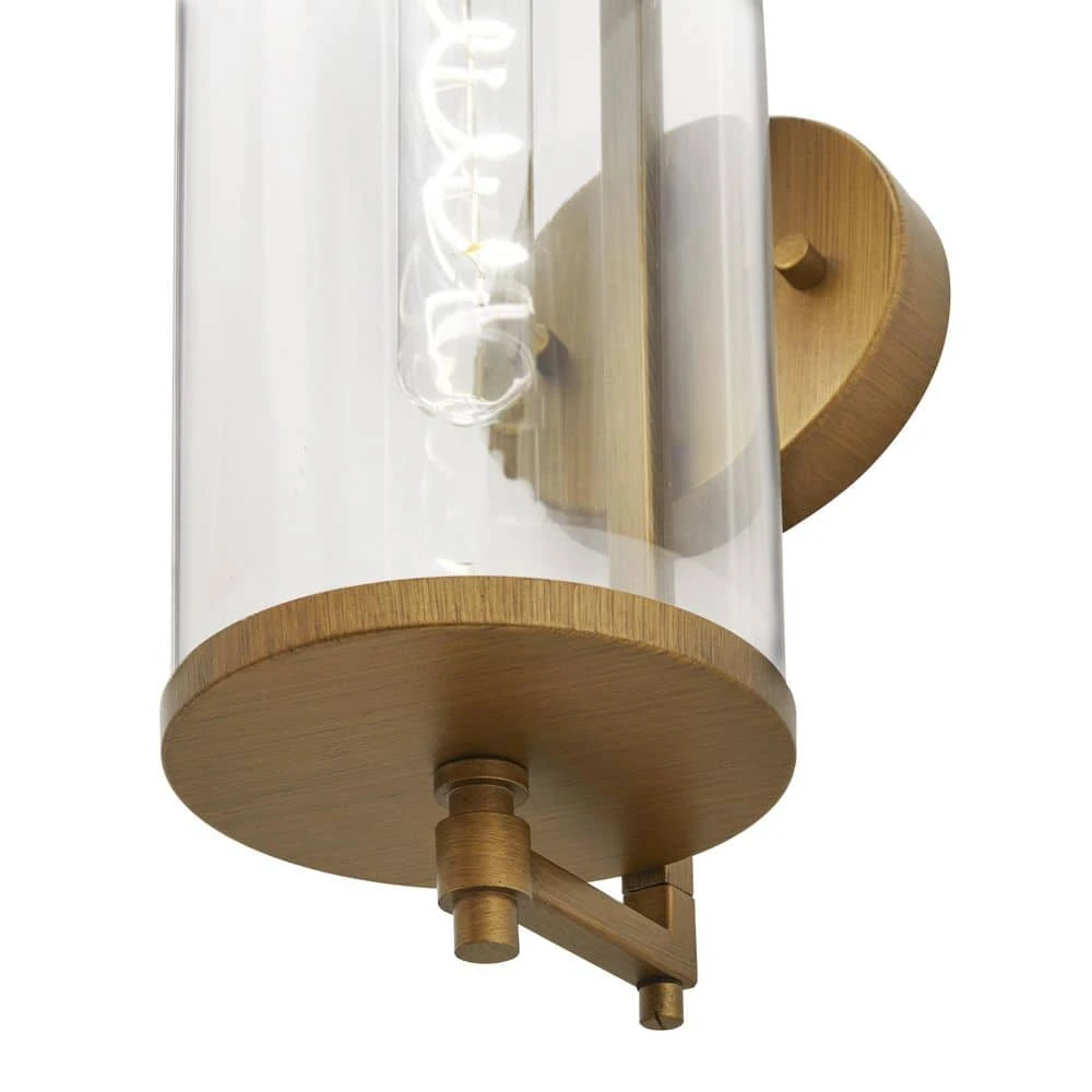 From the Lurelane collection. The clean, minimal design of this exterior wall light will add a beautiful accent to any living space. With its clear rounded glass shade and antique brass surround, this slim wall sconce is a great addition to any home decor. The rounded glass offers full lighting effect to brighten up dark spaces. This wall light of durable steel will remain a timeless classic for years to come. Rated for wet locations or dry, use inside to add elegance to your home decor including dining room, living room, bathroom, bedroom or hallway, or for illuminating outdoor spaces such as front door, garage, porch, garden or walkway.