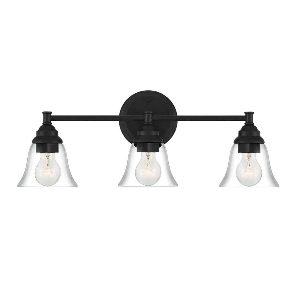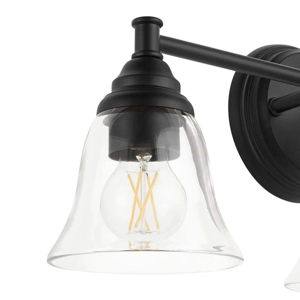 This Marsden vanity light fixture features a casual take on Transitional style with simple lines and a timeless look. These fixtures are built with a protective Matte Black Finish over steel construction to look great and last for-years to come. The clear glass shade adds style and a warm light, they install easily in the up or down position.