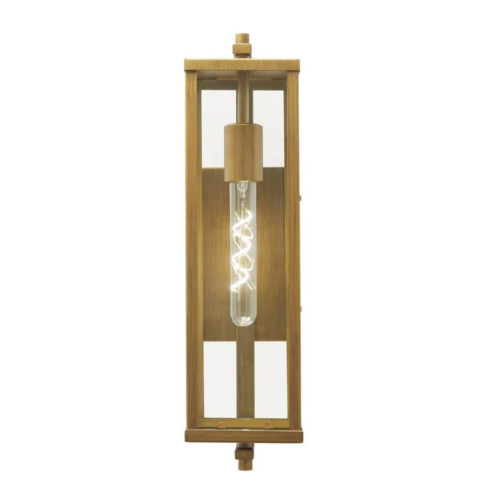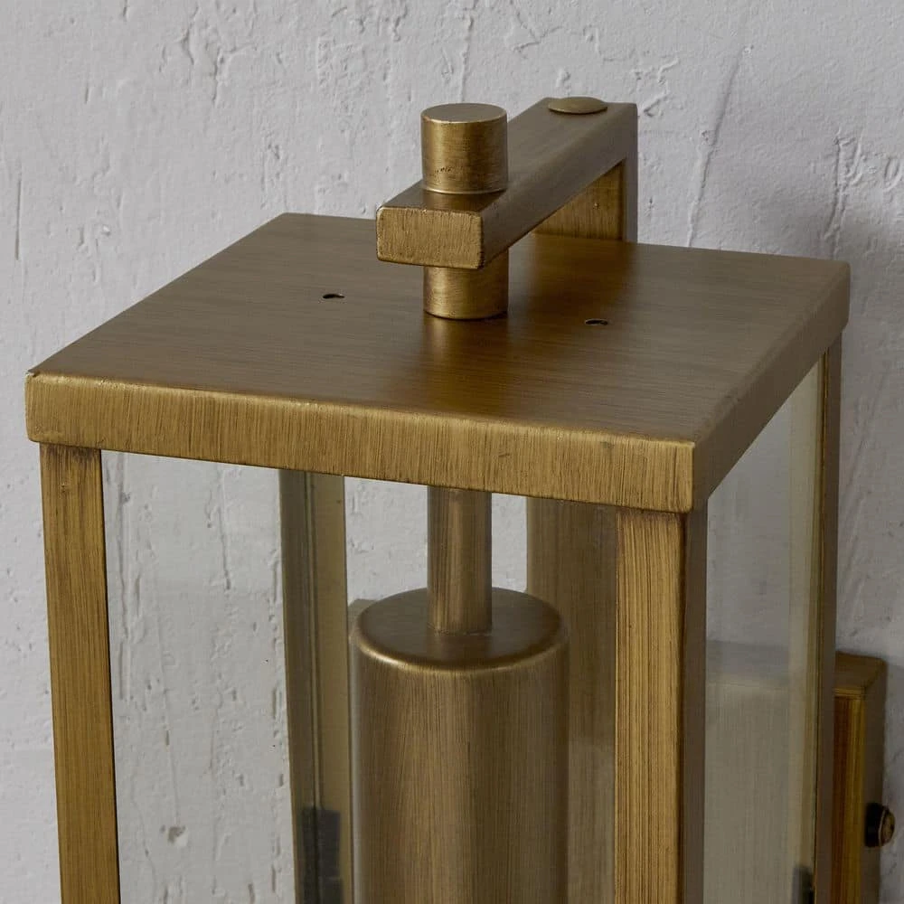 - Exterior wall sconce’s stylish framework and brass finish will add a distinctive beauty and modern allure to any home’s exterior decor