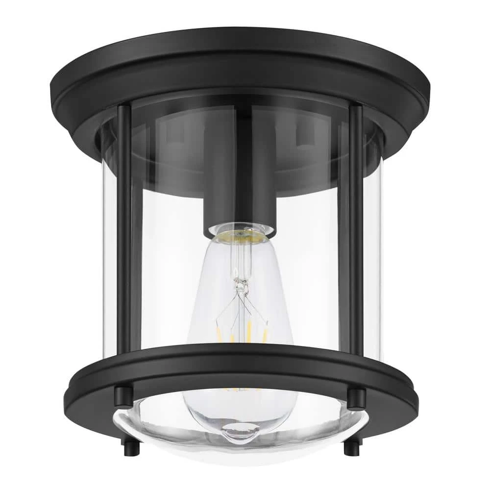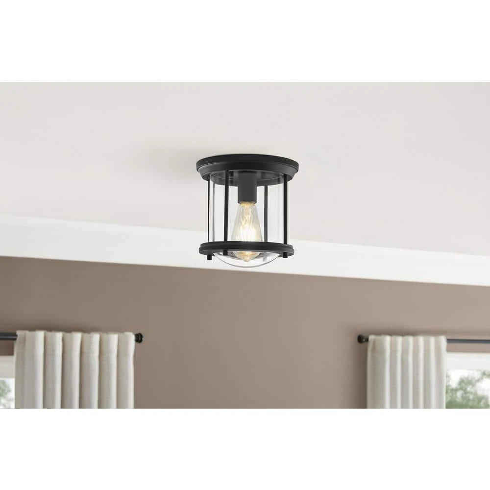 With its solid Metal black finish, this ceiling light will be the star of your room. The oversized clear shade highlights the vintage style bulb. Hardware included for easy installation. This ceiling light is designed for dining areas, nooks, sitting areas, living rooms, bedrooms, hallways, entryways.
