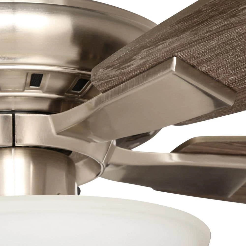 This fan is a decorative alternative to meet the need for cool air and lighting in any room in the house or building. Includes integrated LED light kit for bright illumination. Simple clean design in a Brushed Nickel finish with reversible blades.