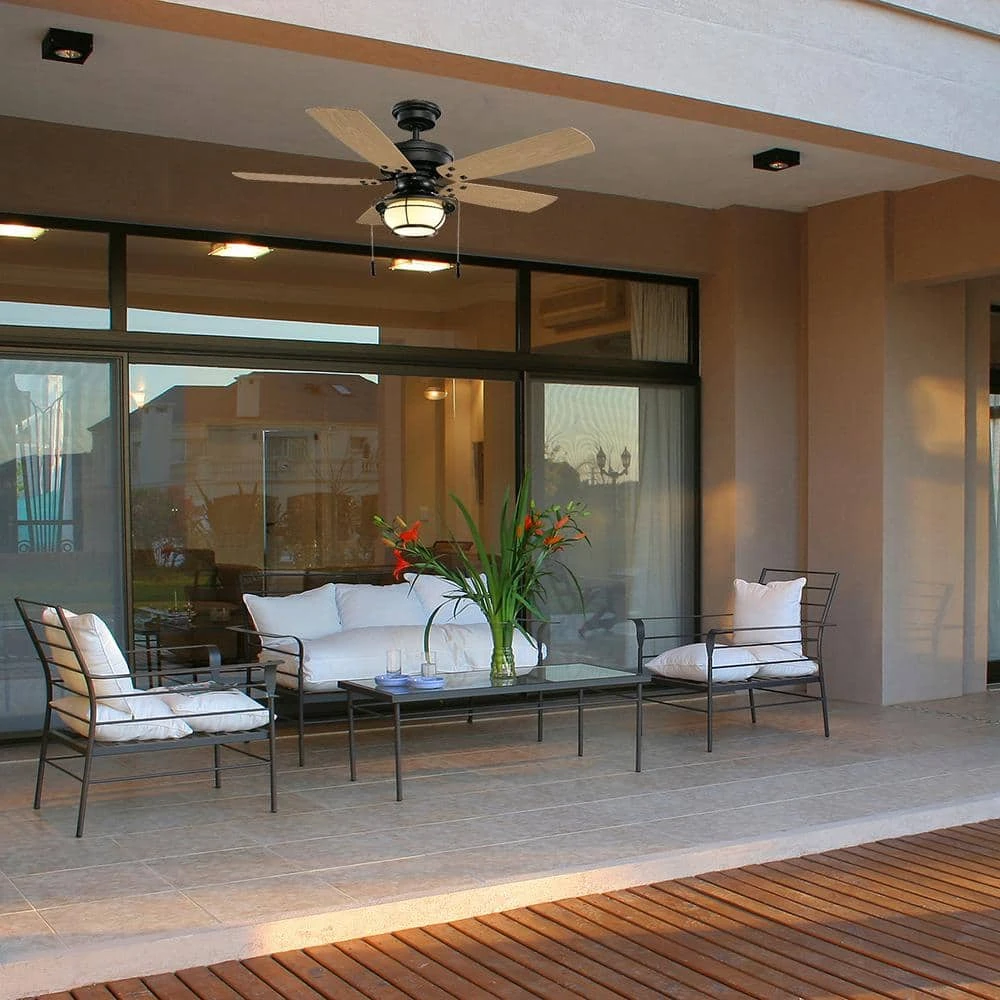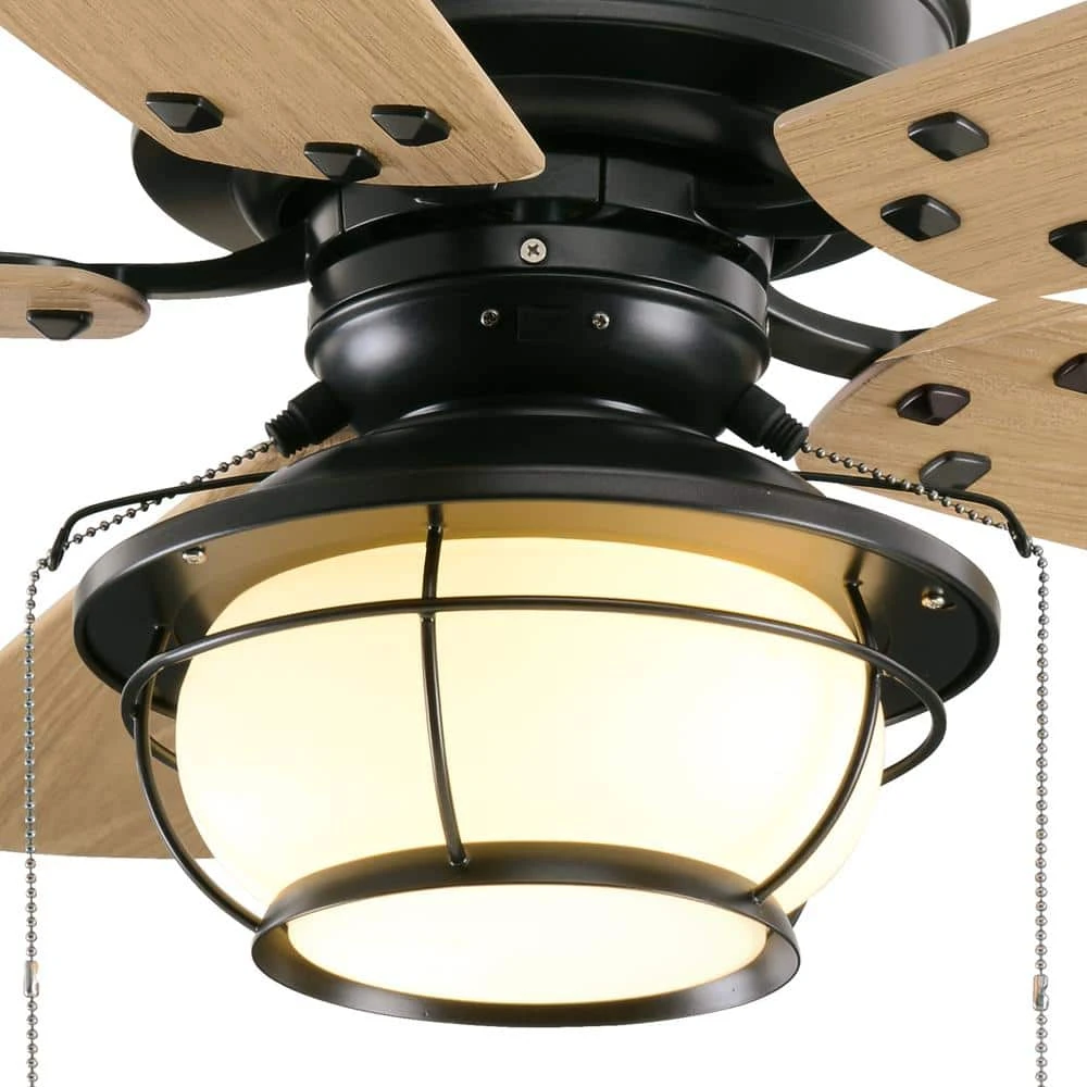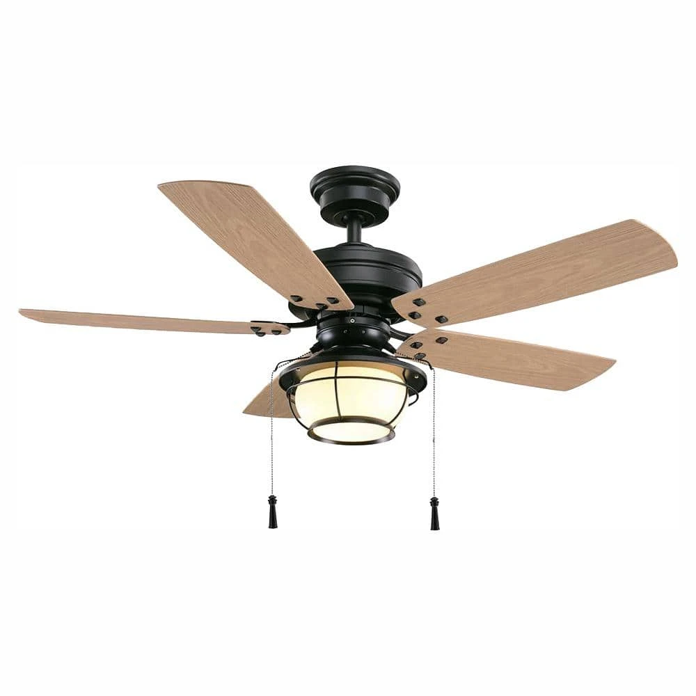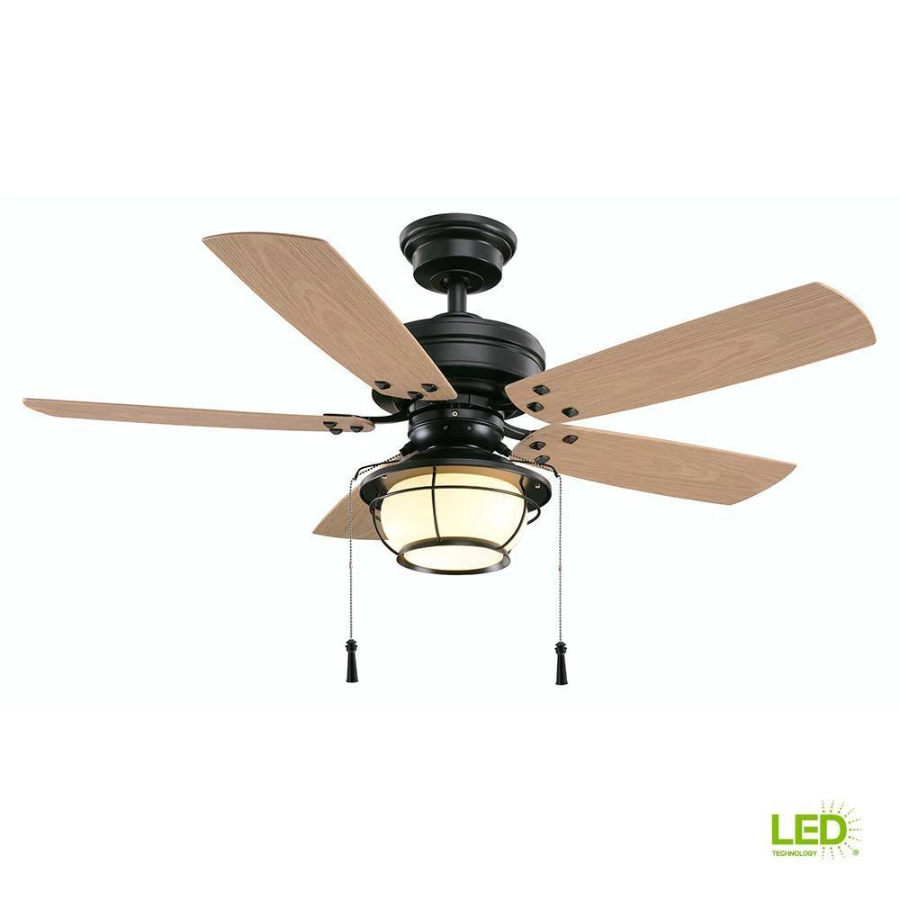 Bring an elevated look to your space with this North Shoreline 46 in. LED Indoor/Outdoor Natural Iron Ceiling Fan with Light Kit. It features a natural iron finish, five pine-finished ABS blades and a frosted bowl light kit. You can use this with a variety of design schemes.