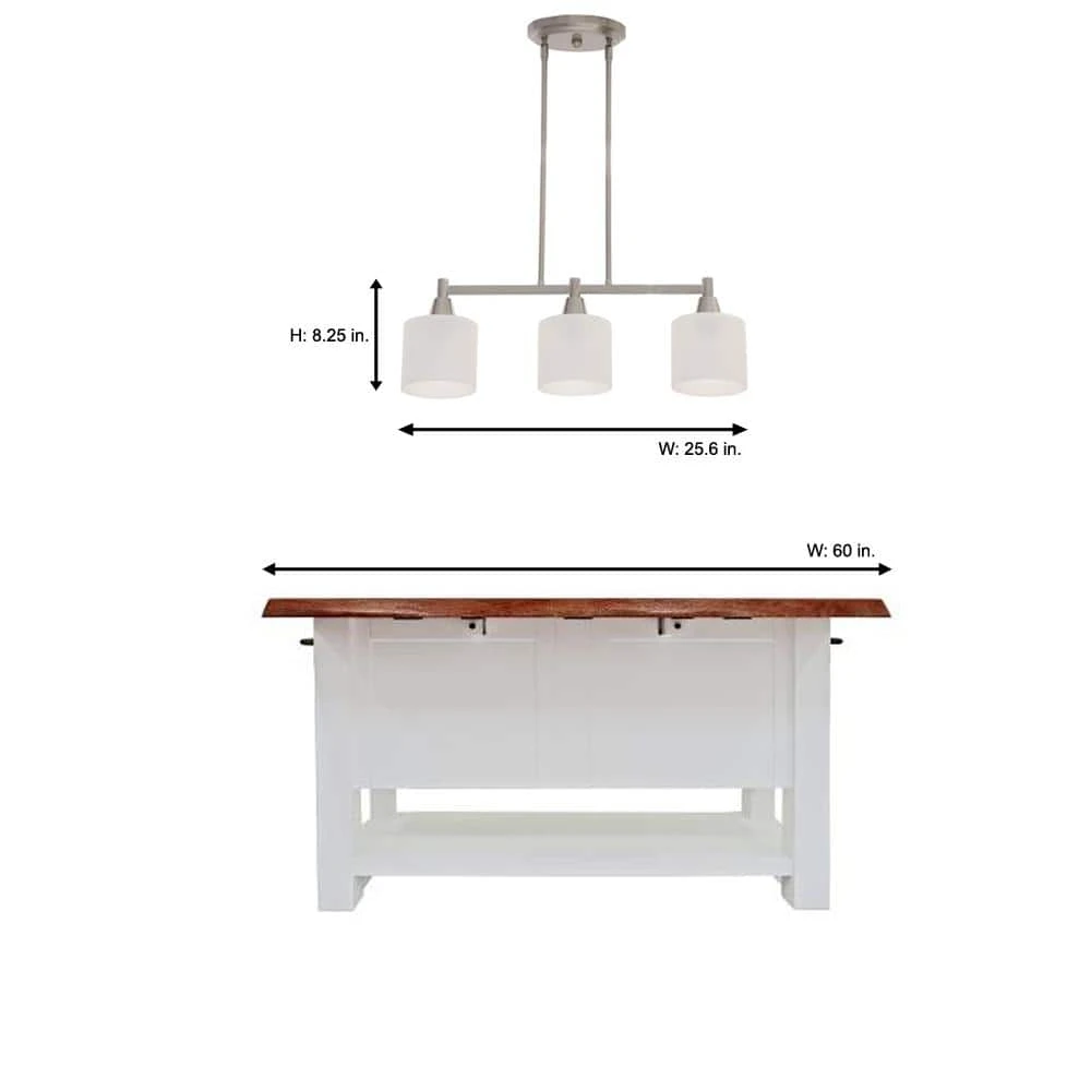 From front door foyers to kitchens, the Hampton Bay Oron 3-Light Brushed Steel Island Light offers a sleek and versatile look with clean lines. Durably crafted with a brushed steel finish, the adjustable design accommodates a variety of ceiling heights and is easy to install with included instructions. The sleek metallic housing is complemented by white linen glass shades, providing soft illumination for any space, especially ideal above a kitchen island.