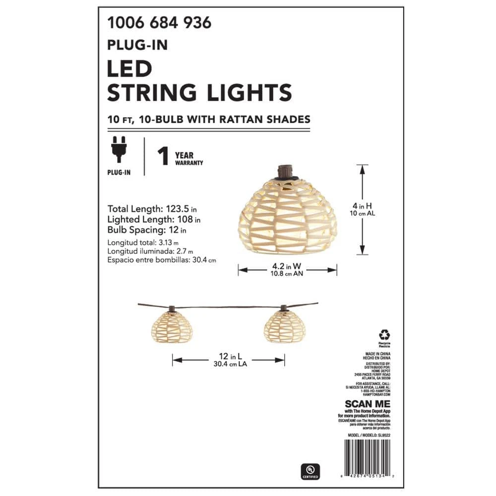 Illuminate your porch, gazebo, canopy or outdoor area with these Rattan Garden Lights. The decorative lights have 10 LED bulbs with glass cover to light your entertainment area. for indoor and outdoor use. However you choose to display them they surely will enhance the ambiance.
