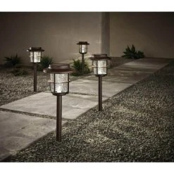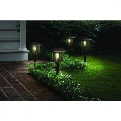 10 Lumens Solar 2-Tone Bronze and Warm Wood LED Landscape Pathway Light Set (4-Pack) by Hampton Bay