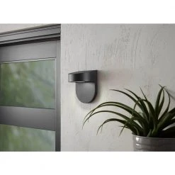 Highstone 1-Light Medium Matte Black Hardwired Outdoor Coach Light Sconce by Hampton Bay